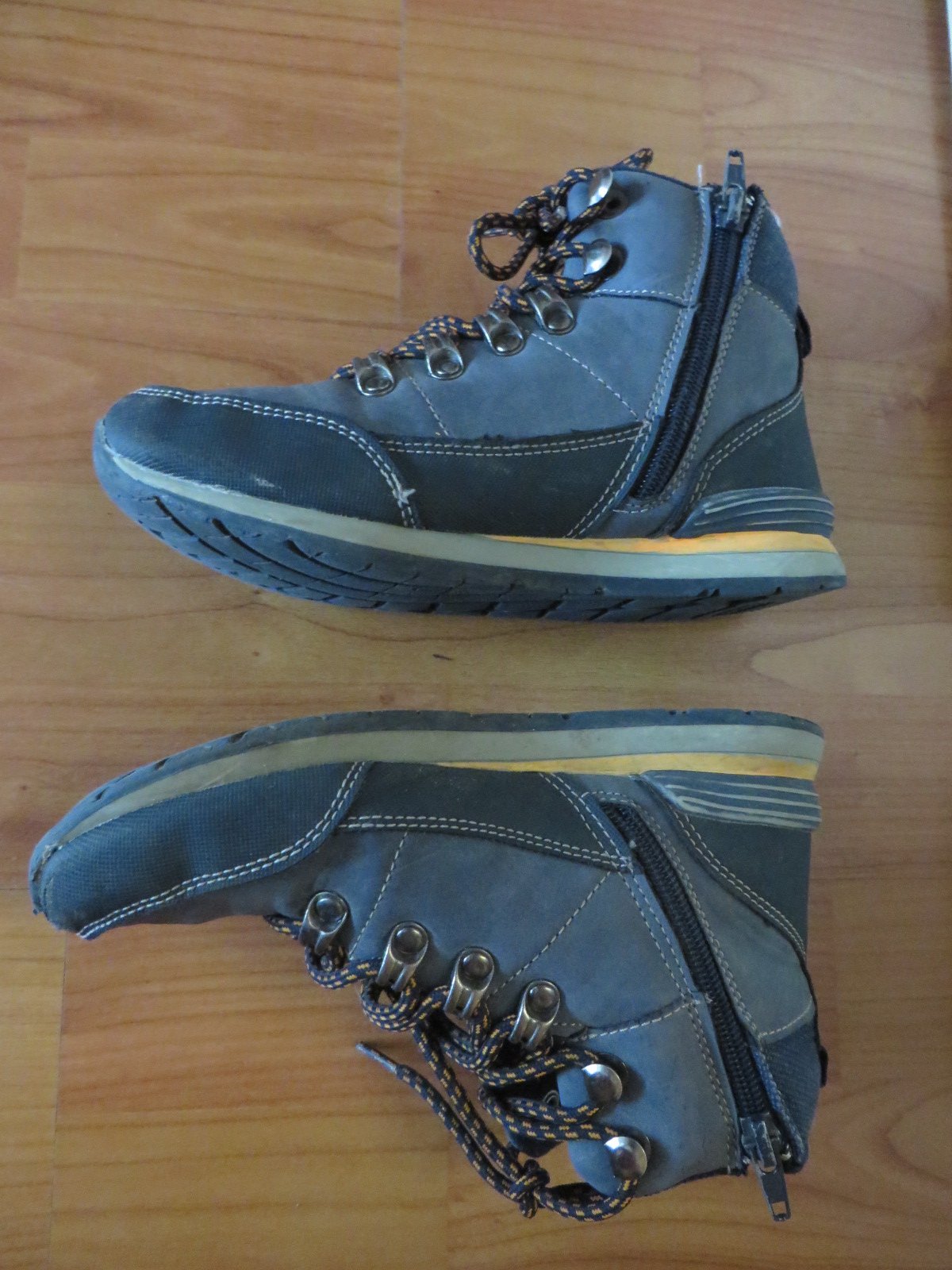 Predám nosené chlapčenské mierne zateplené kotníkové tenisky / topánky. Veľkosť je 33, vnútornú dĺžku majú 21,5 cm. Zapínanie je na boku na zips, čo ocenia nepriatelia šnúrok. Vpredu sú šuchnuté, okopané, u syna sa tomu nevyhnem. Cena tomu prispôsobená.