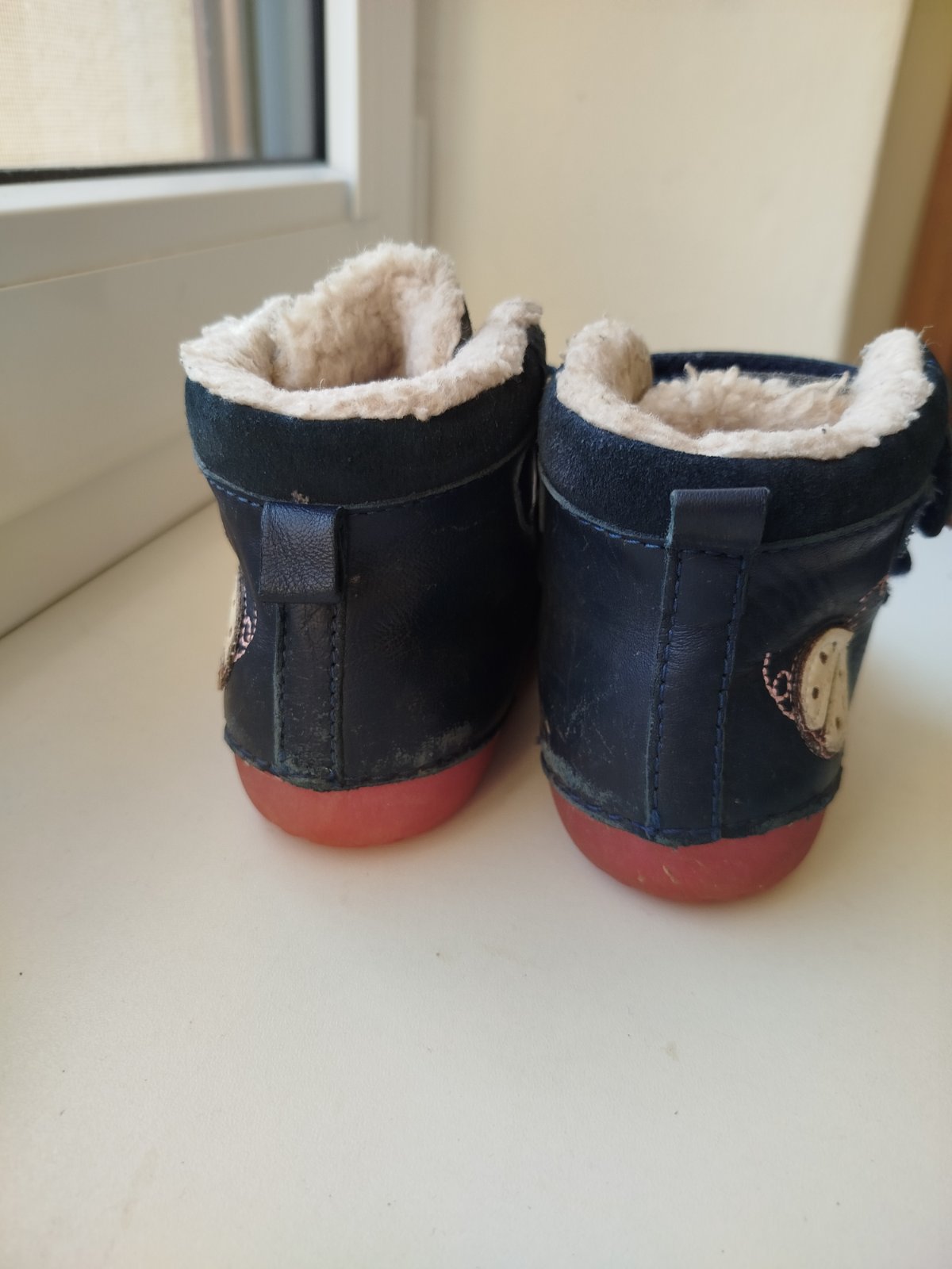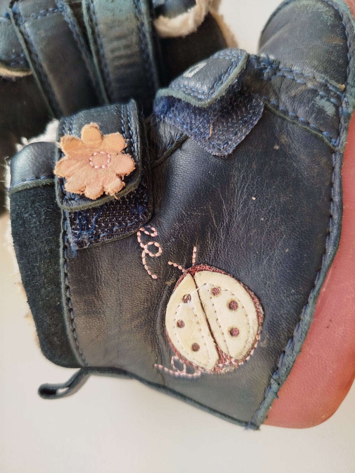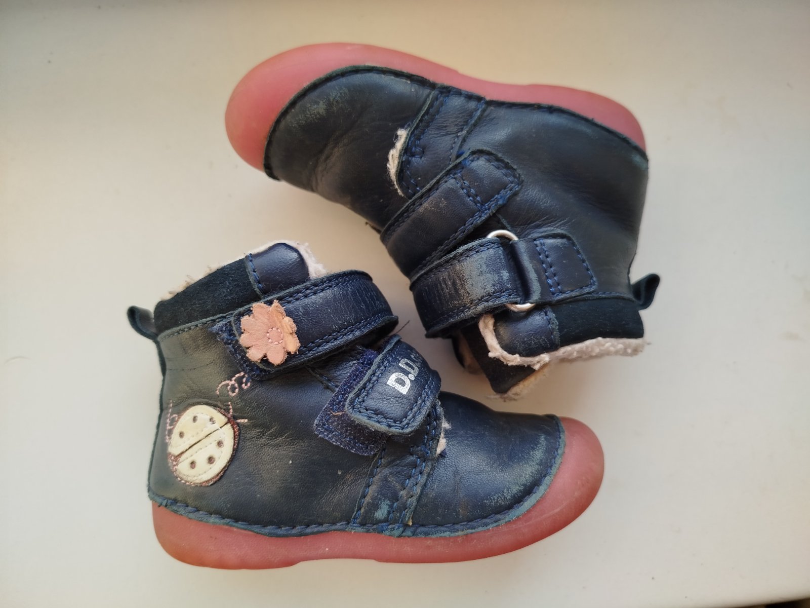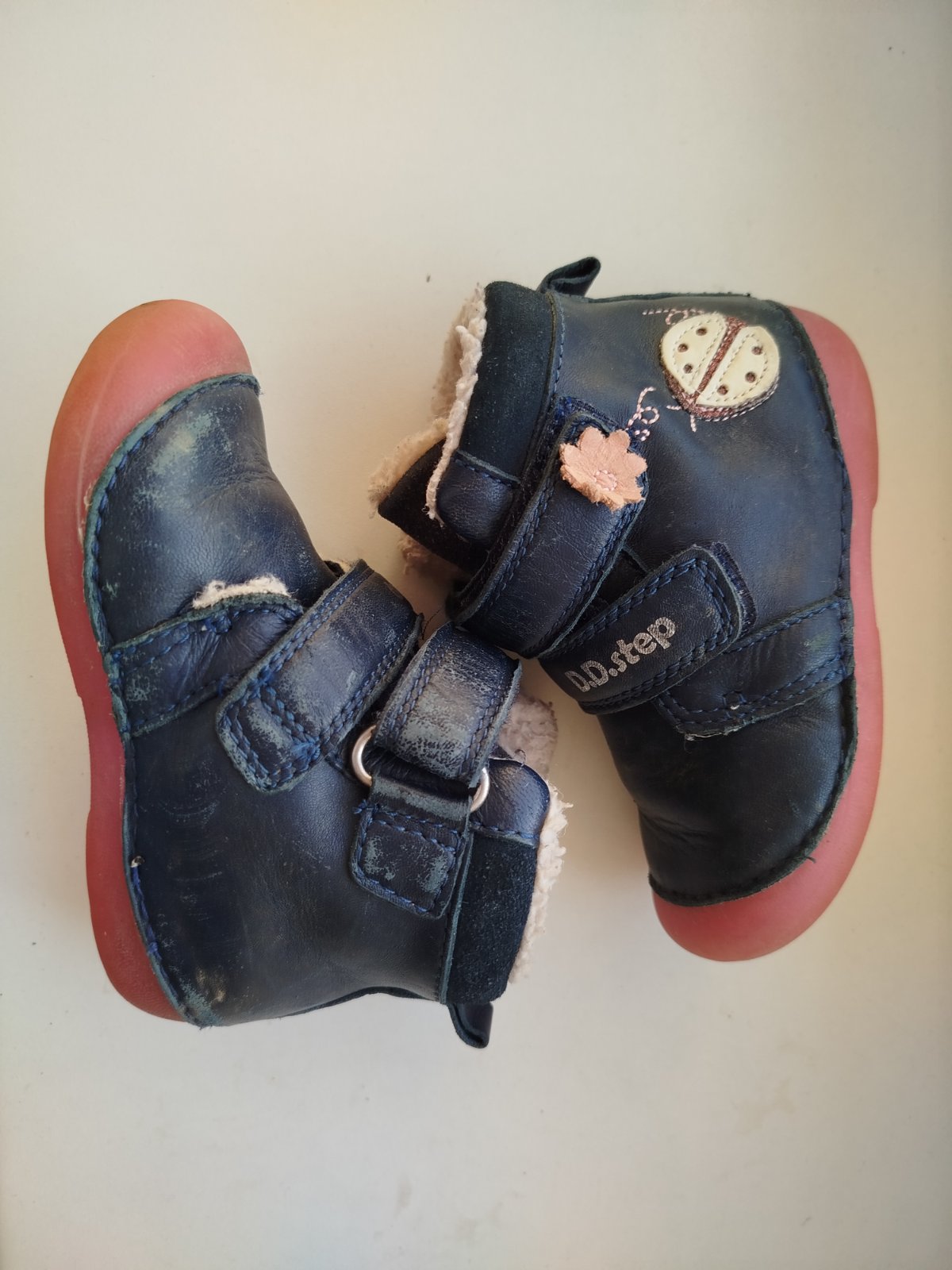 Predám nosené, ale stále vo veľmi dobrom stave kožené dievčenské zimné topánky zn. D.D.step. koža trošku zvrchu ošúchaná, ale vzhľadom na to že sú tmavé sa to dá krémom na topánky bez problémov zakryť. Podrážka je fosforová a v tme po nabití slnkom svieti.