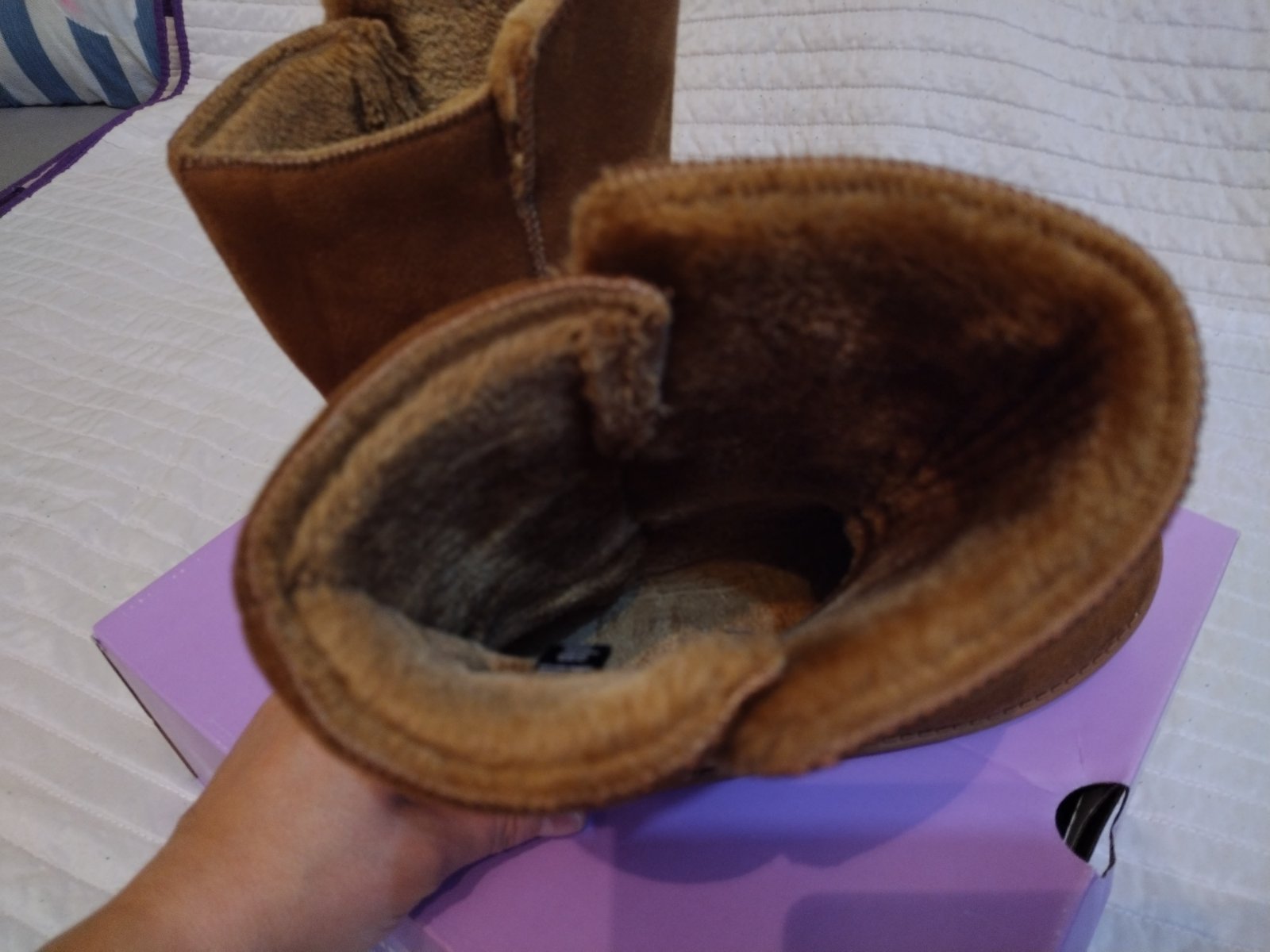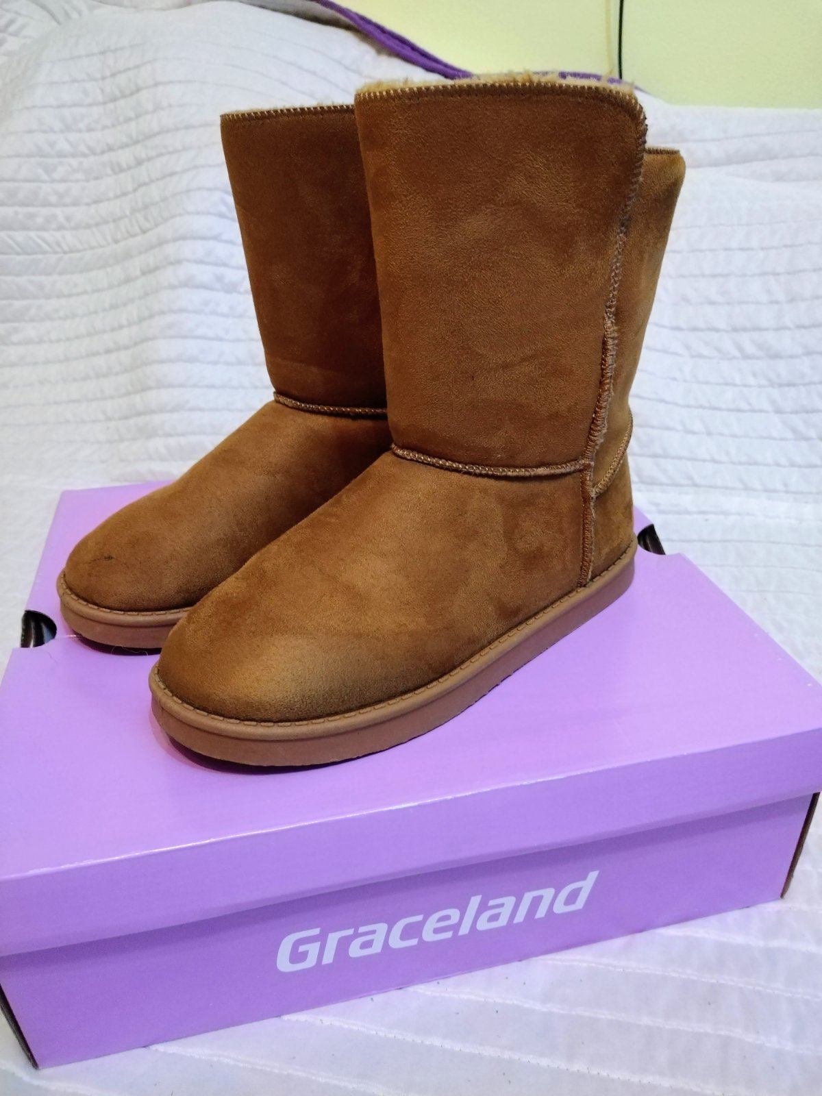 Hnedé čižmy, veľkosť 38, značka Graceland, teplučké, nasúvacie, podšité, impregnované v predajni pri kúpe, malé poškodenie pri špičke, inak bez poškodenia.