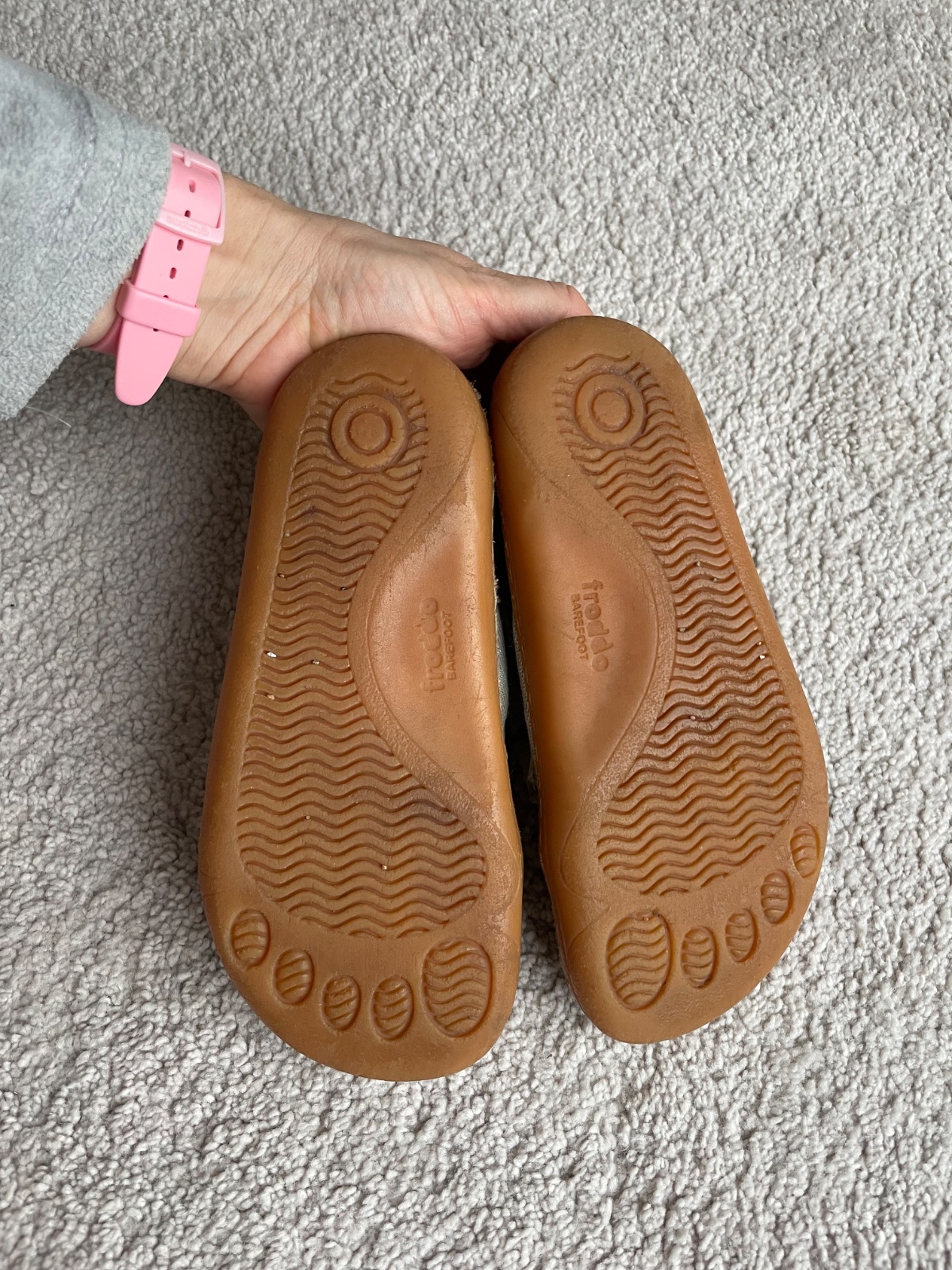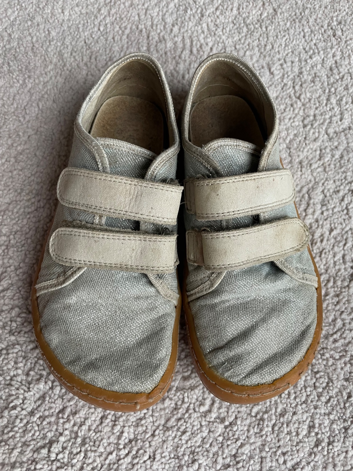 Barefoot plátenky po 1 dieťati. Vpredu sú miesta, kde je odpadnutie guma