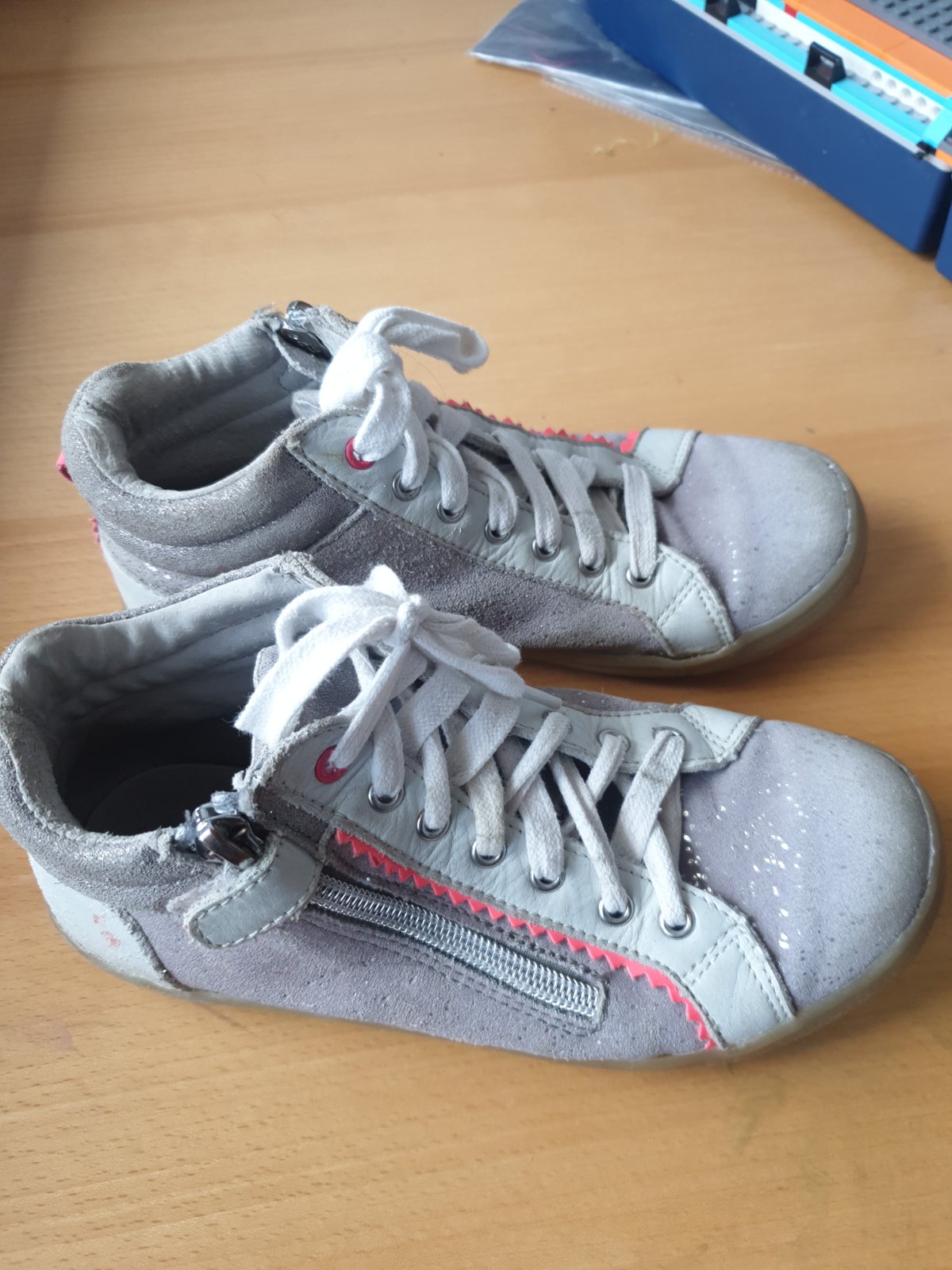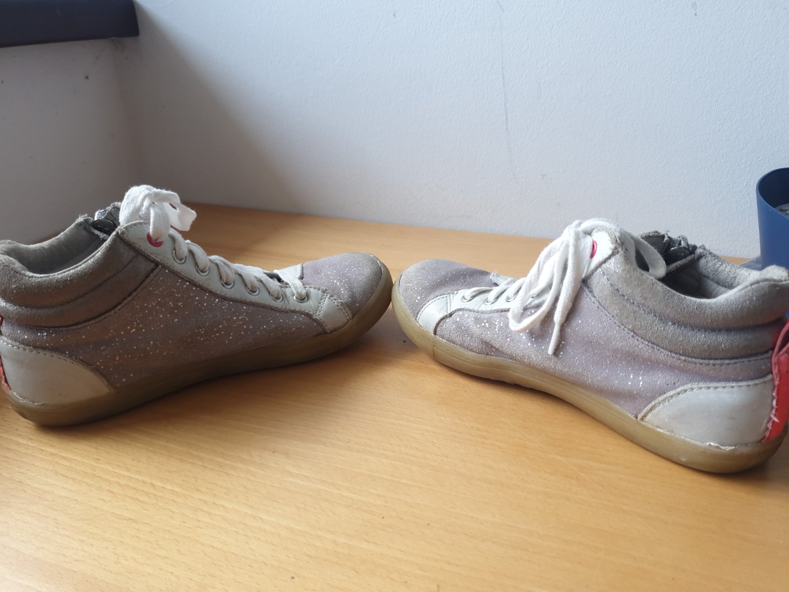 Dievcenske tenisky jemne trblietave nemusia sa viazat nakolko maju zips na boku👍.