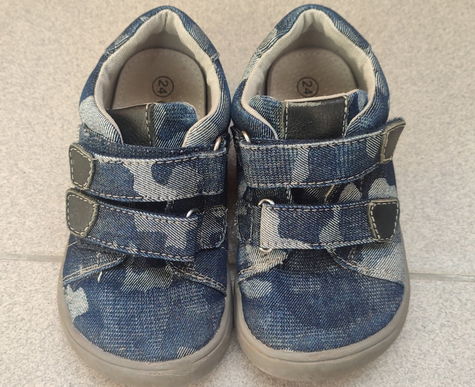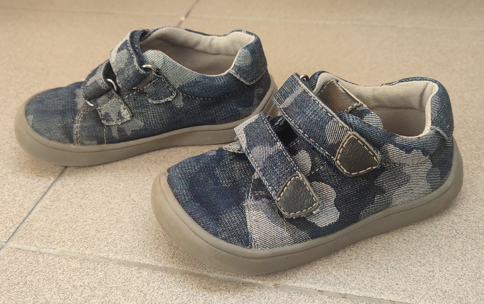 Kožené barefoot tenisky po jednom dieťati v dobrom nosenom stave. Funkčne sú v poriadku, len koža na suchých zipsoch je trochu zodraná, plus na dvoch miestach sa veľmi jemne odlepujú od gumenej pod...