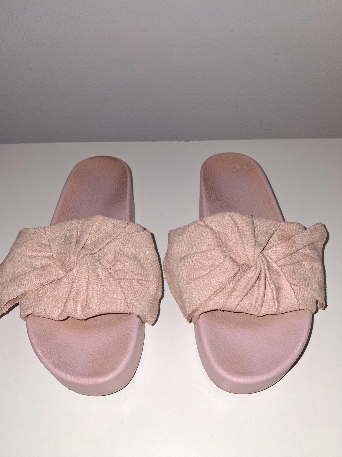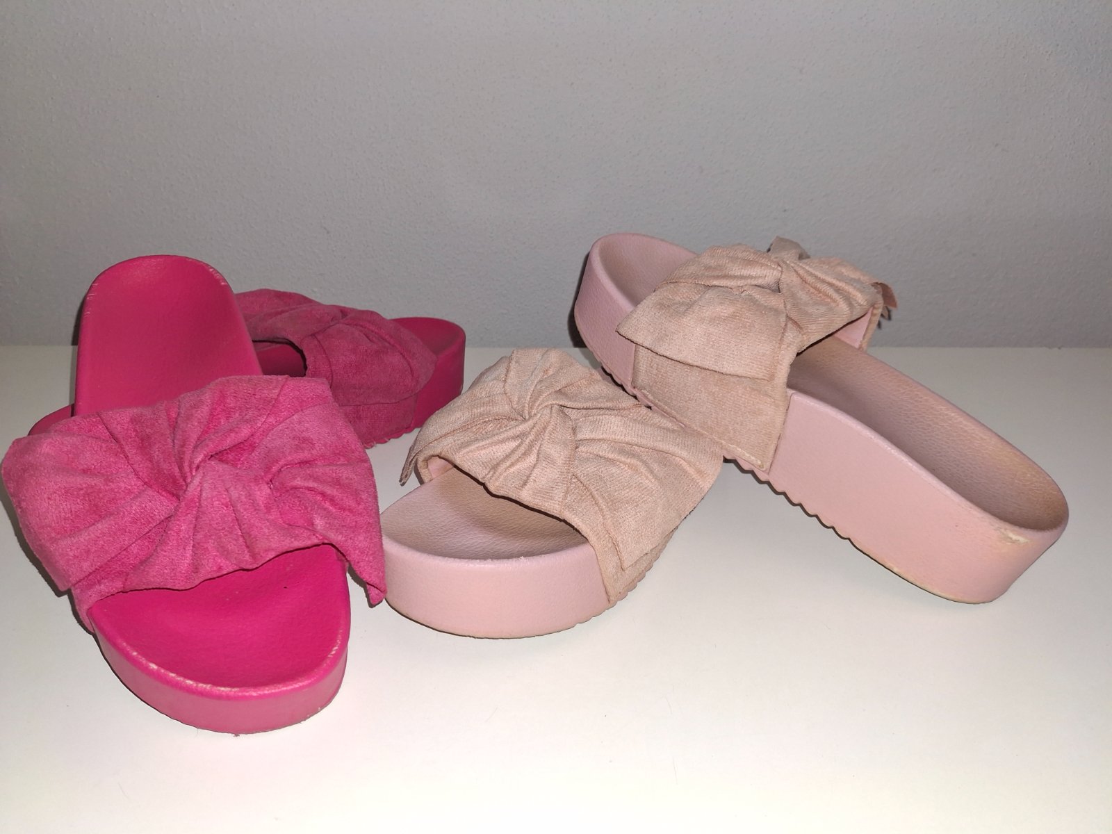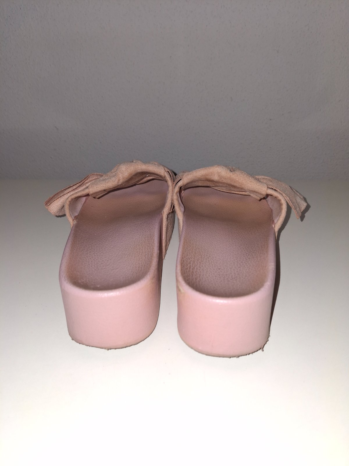 Perfektne šlapky na miernej platforme, vnutorna dlzka nadoraz 25 cm, sedia perfektne na č. 38. Vyska platformy vpredu: 3,5 cm, vzadu: 4 cm, pohodlné ako papučky, stale krásne bez poškodenia. Mala dom ich rozne farby kedze super vyzeraju a super sa nosia. 🩷🩷🩷🩷 kuk mam ich v ponuke aj v krasnej sytej cyklamenovoruzovej farbe