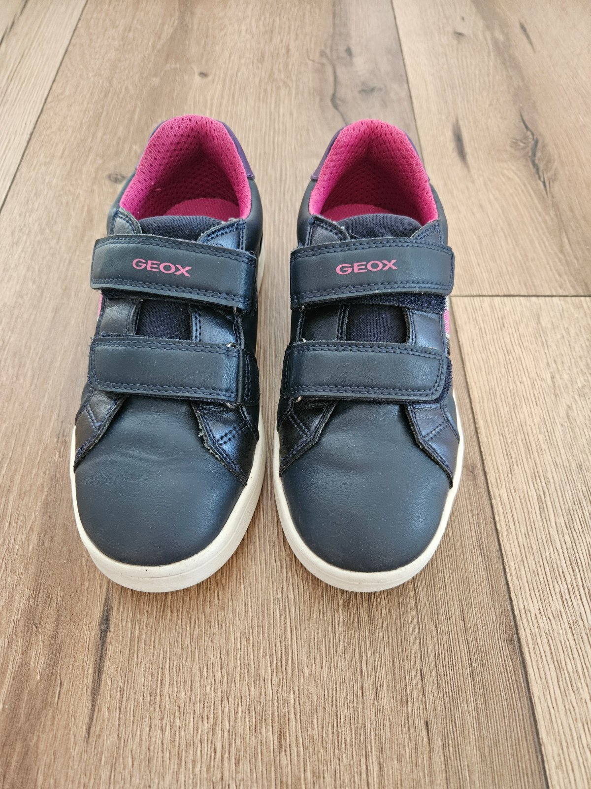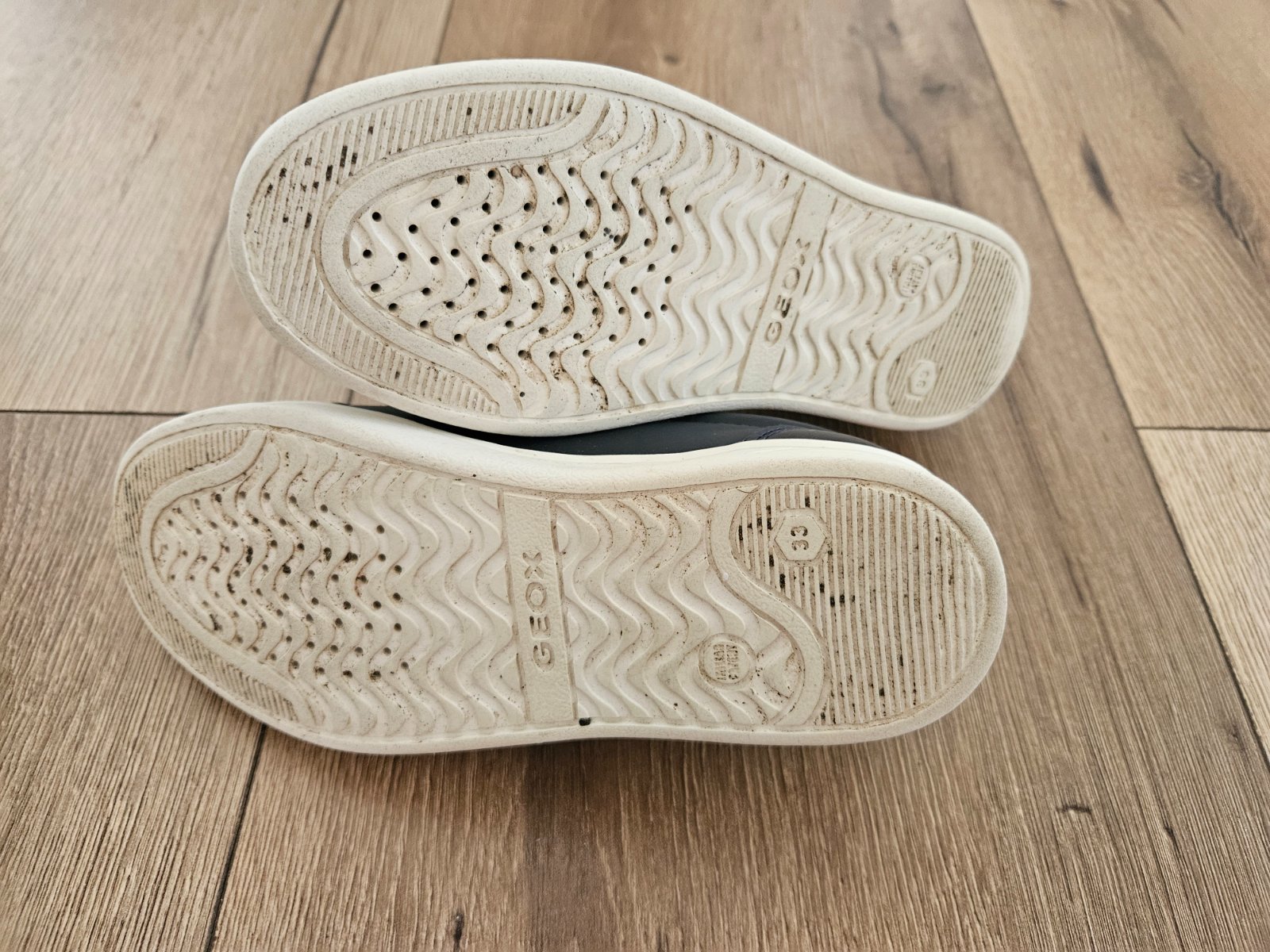 Predám geox tenisky, mierne zateplené a vhodné aj do miernej zimy. Veľkosť 33, tmavomodrej farby, nosené jednu sezónu. Jemné začínajúce praskanie vpredu bez funkčného poškodenia (viď foto) a preto ...