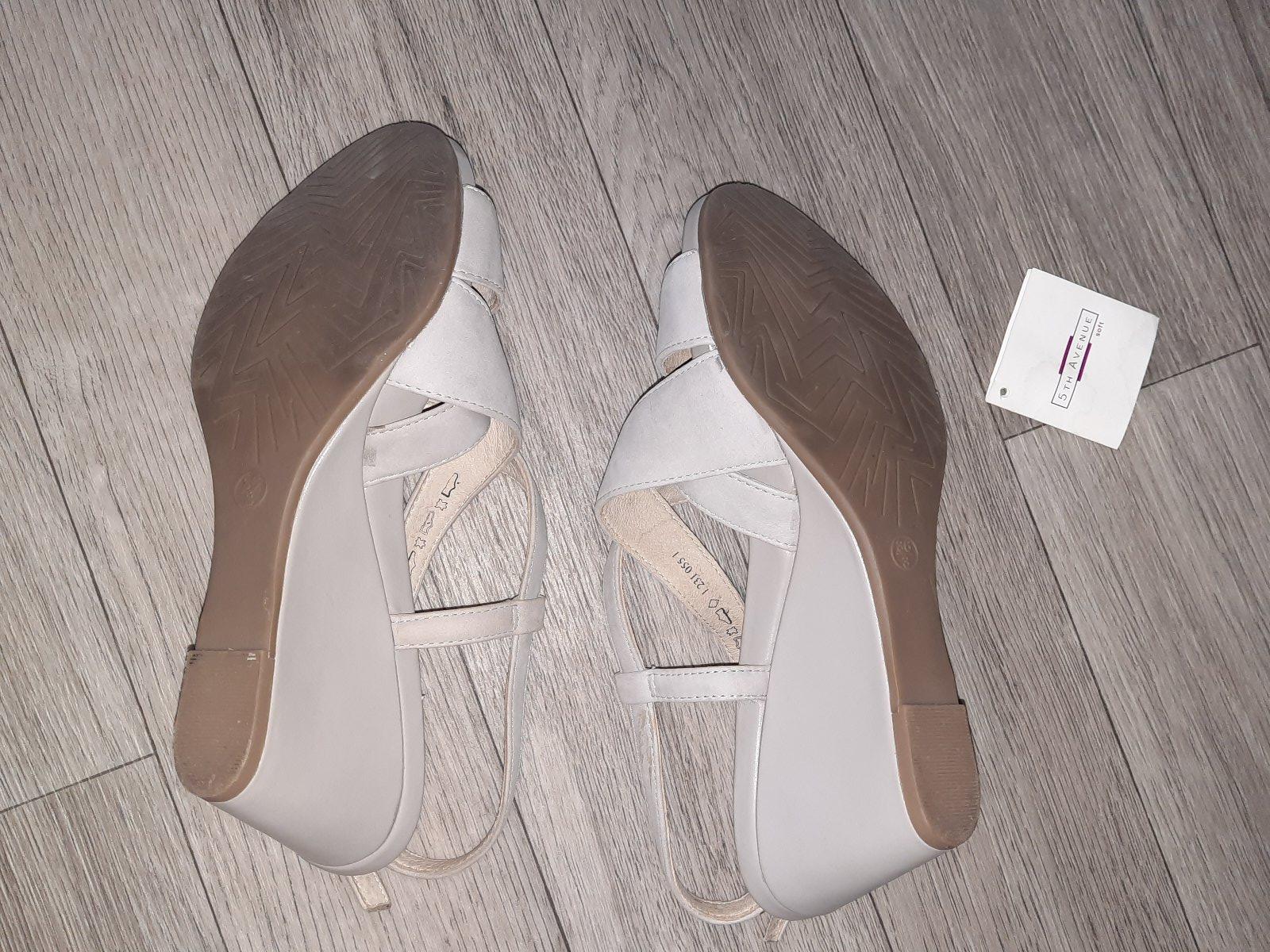 Bledošedé sandále s plným podpätkom. Deichman, 5th Avenue.
