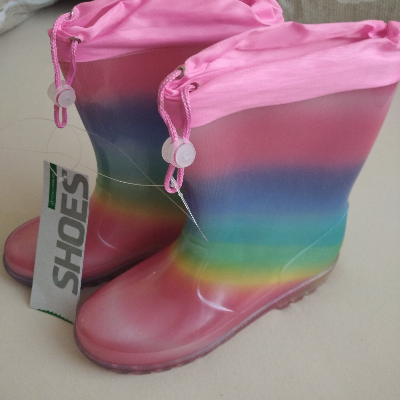 Ponúkam na predaj nové nepoužité dievčenské gumáky značky Coccodrillo veľkosť uvedená 34, ale sú väčšie 35-36. Vnútorná dĺžka 23 cm. Nie sú zateplené. Sú svietiace.