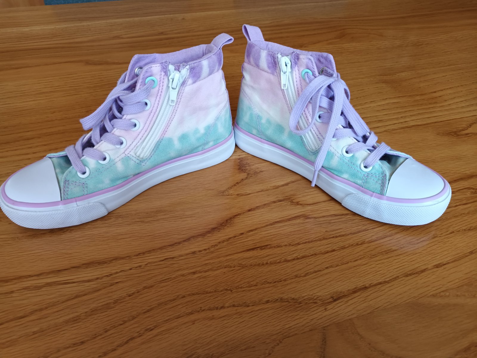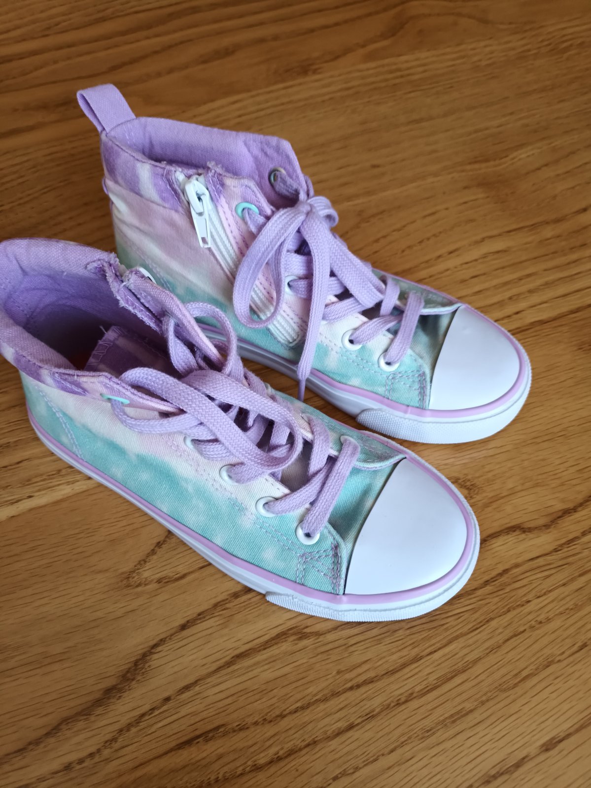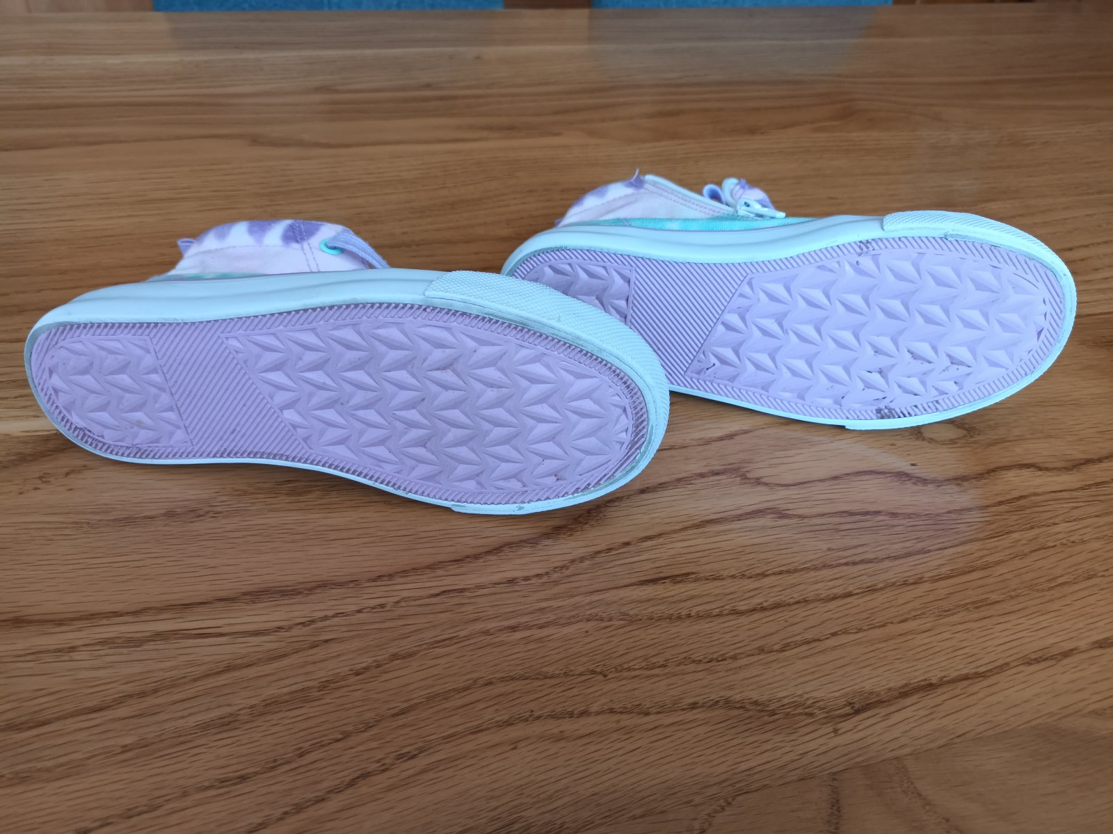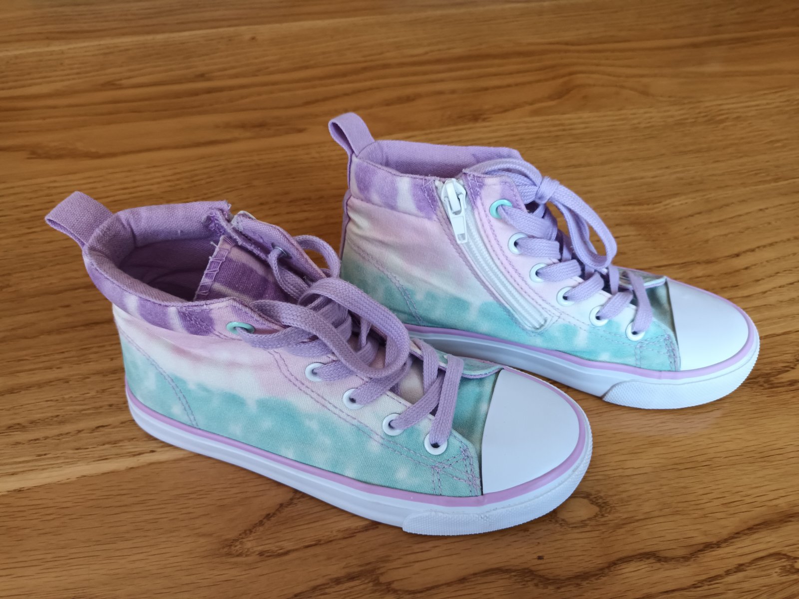 Štýlové dievčenské tenisky príjemnej letnej farby. Minimálne známky nosenia. Zvnutornej strany majú zips. Cena 5 eur plus poštovné.