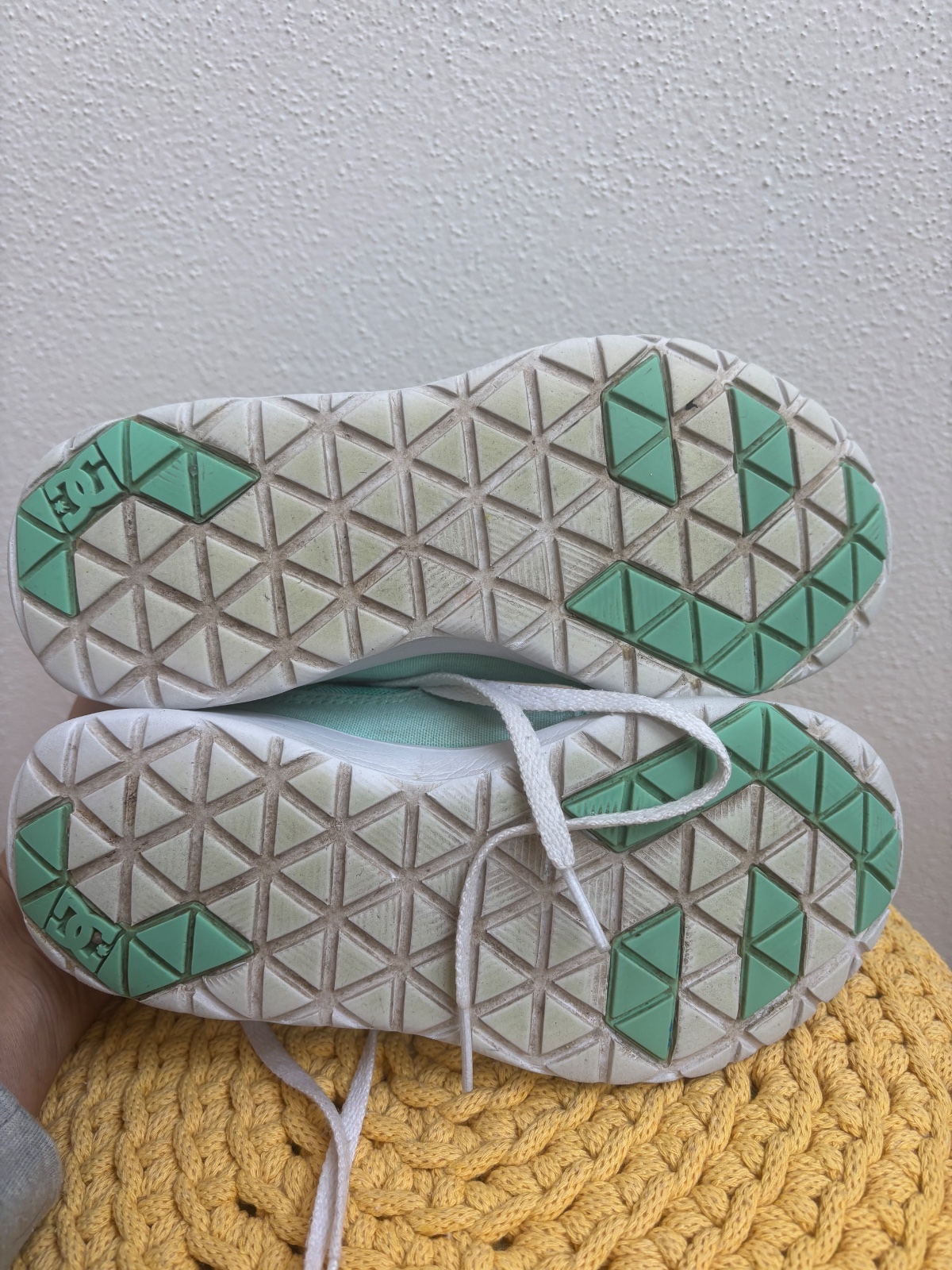 Úžasne ľahučké platenky v peknom nosenom stave. Na jednej špičke suchnuta guma a na jednej topánke pri jazyku fliacik. Inak sú fakt super a parádna farba. Veľkosť tak 33-34. Na nich je síce písaná 36, ale DC majú iné číslovanie.