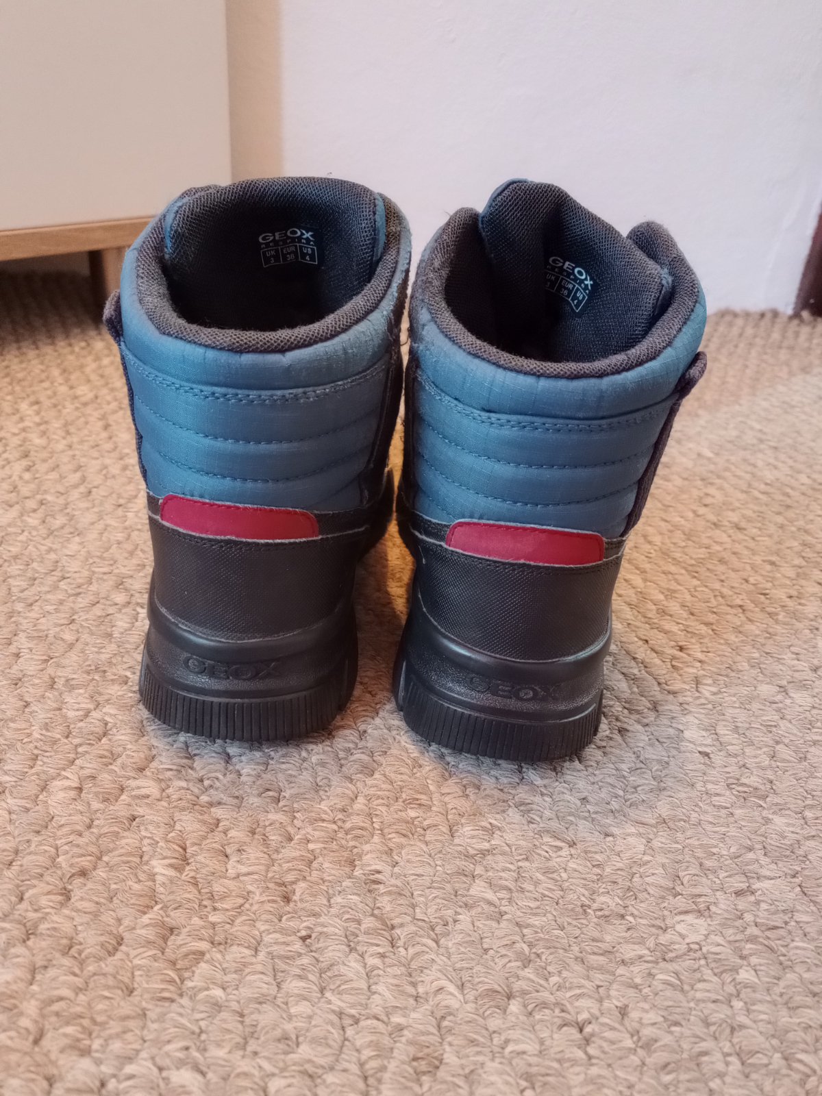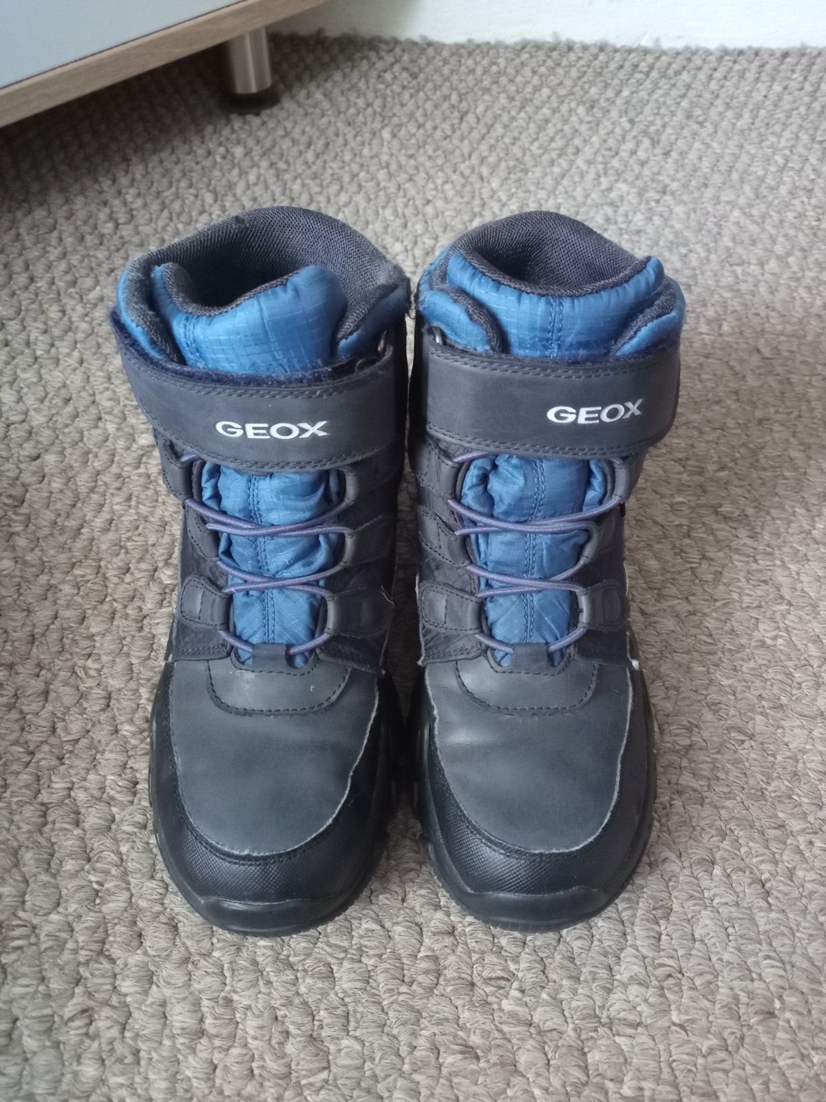 Parádne zimné čižmy pre chlapca značky GEOX. Bez zaväzovania, po impregnovaní neopremokavé. bežné známky nosenia, bez poškodenia, suché zipsy držia. Len malé odretie na vnútornej strane topánky - posledná fotka, len estetická vada, ktorú pri nosení ani nevidieť 😉