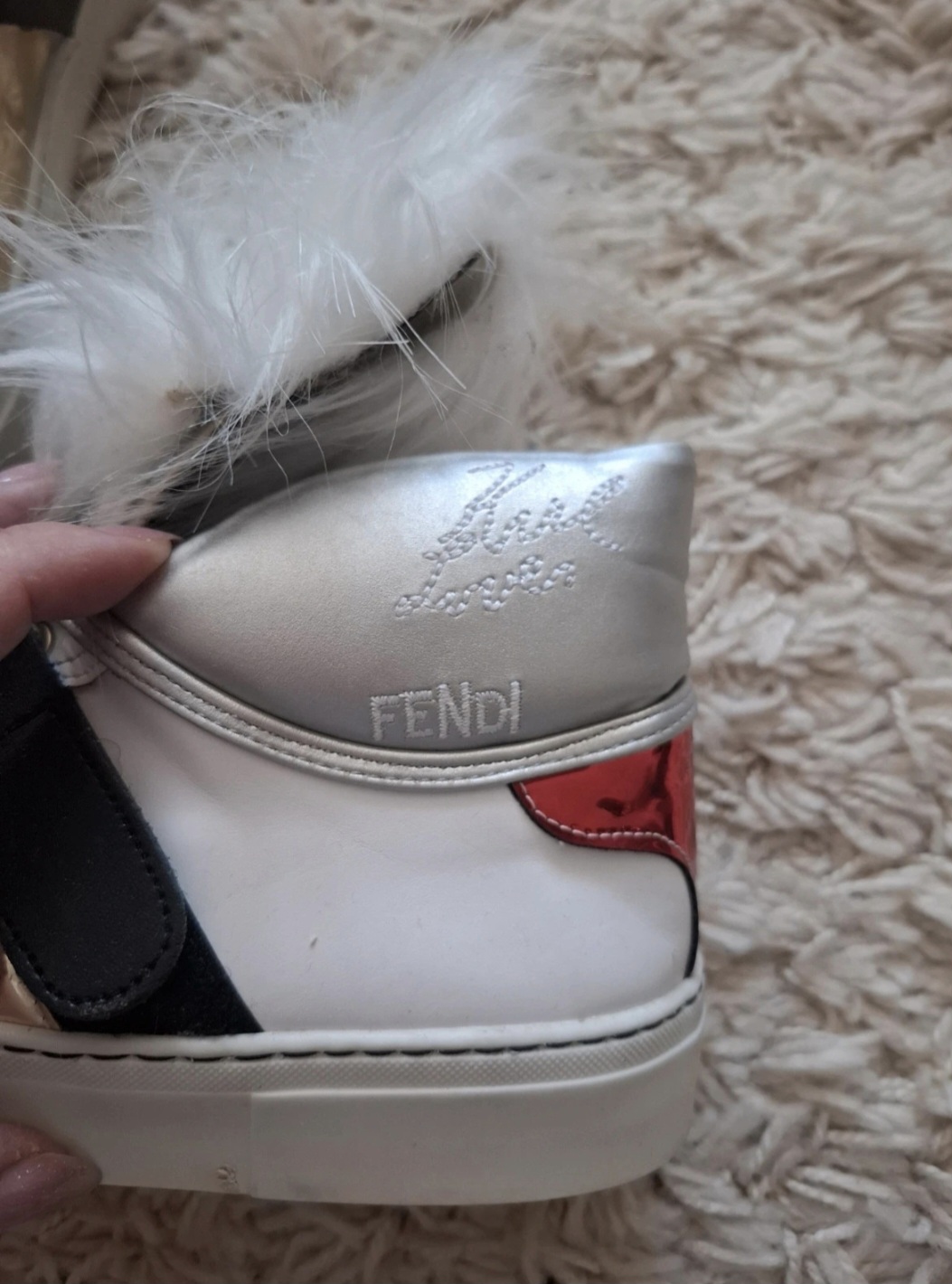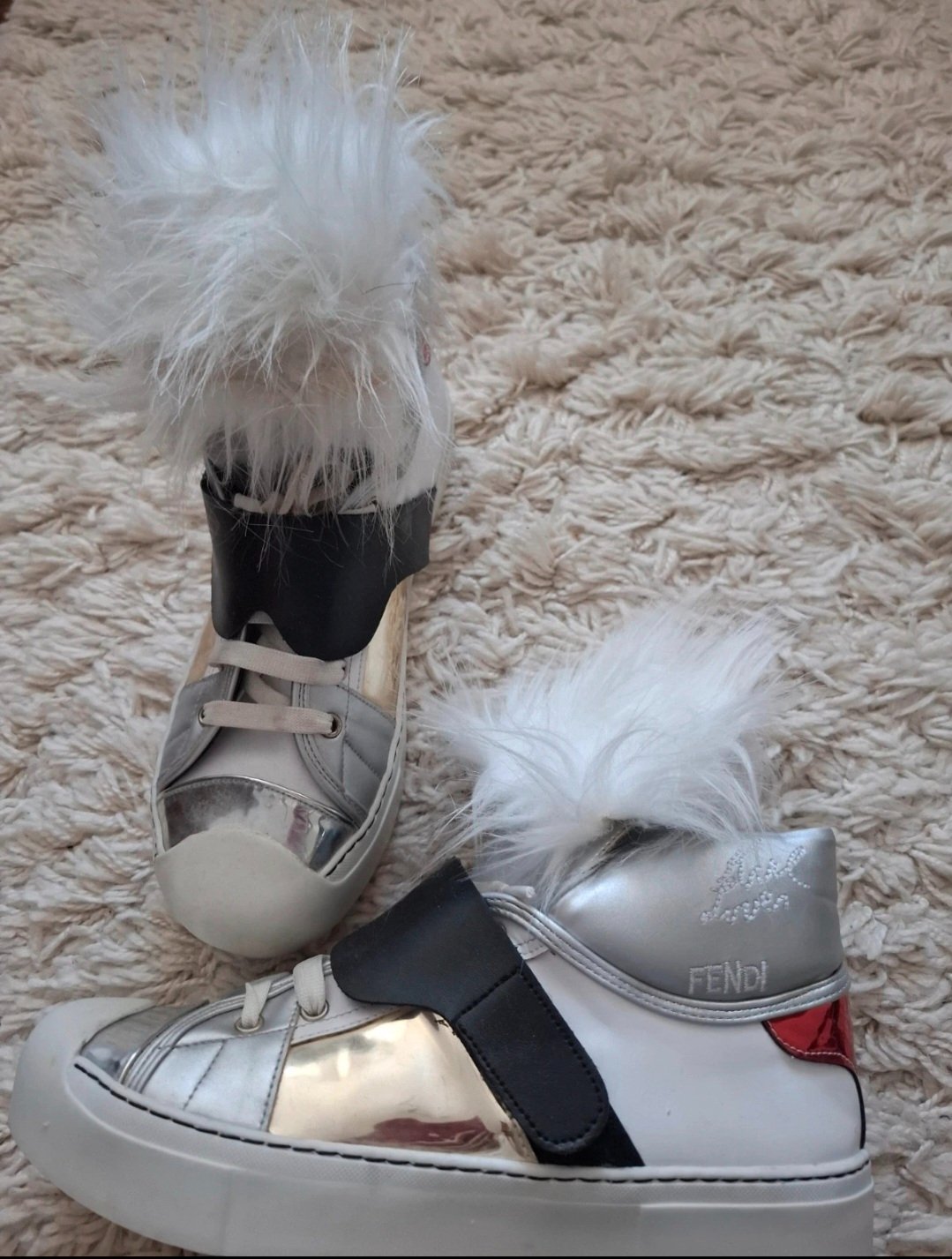 Tenisky v nádhernom stave. Chodi sa v nich ako po obláčiku. Vzadu mierne mini šuchnutie vid foto. Značka Fendi v spolupráci Karl Lagerfeld bola to limitovaná edícia ktorá sa uz nevyraba. PC bola velmi vysoká.