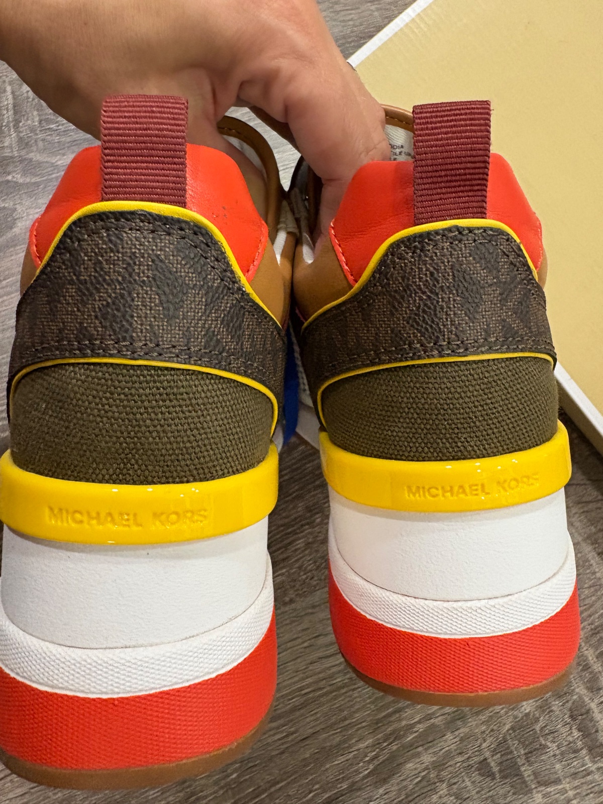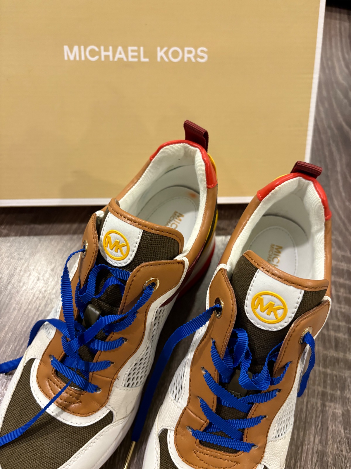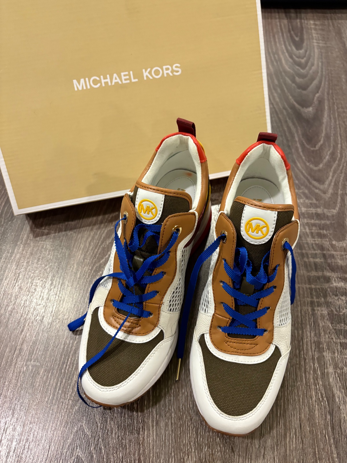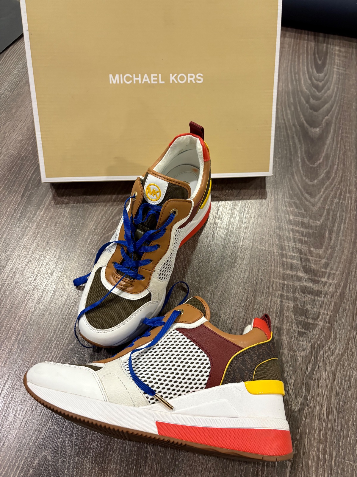 Michael Kors nove damske tenisky na platforme v original krabici, len vyskusane,nestiham nosit.Velkost 7 nasa 37…fakt krasne.Vyska platformy je vzadu 6cm