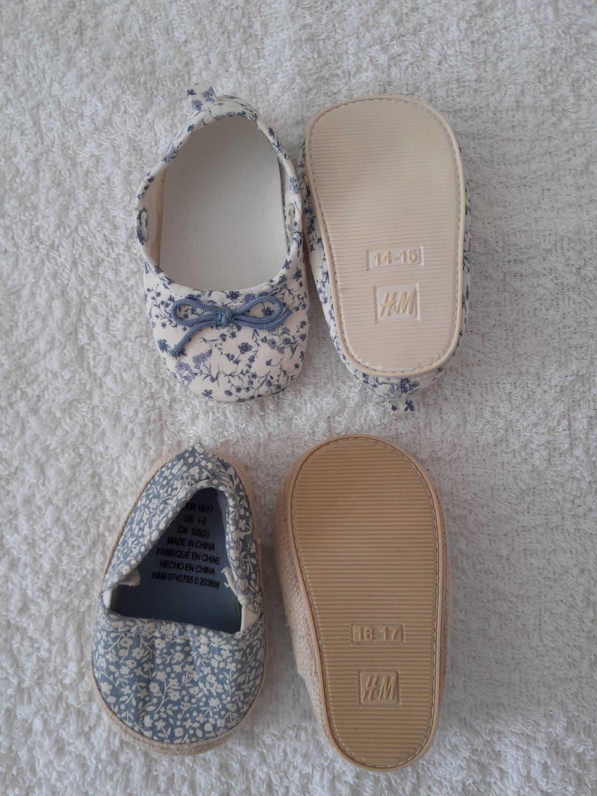 Topánočky pre dievčatká veľkosť 14/15 (biele s modrymi kvetinkami) a veľkosť 16/17 (modré s bielymi kvetinkami), 1,5€/pár alebo gratis k nakupu (na vyžiadanie)