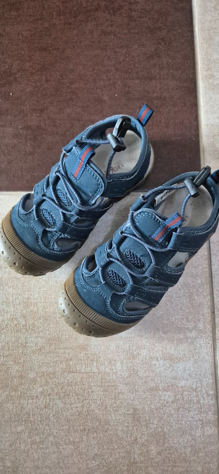Zachovalé sandále ale bude treba vymeniť suchý zips na zapínanie v zadnej casti topanky,(zohľadnené v cene). Inak bez poskodenia. V.dl 18,5