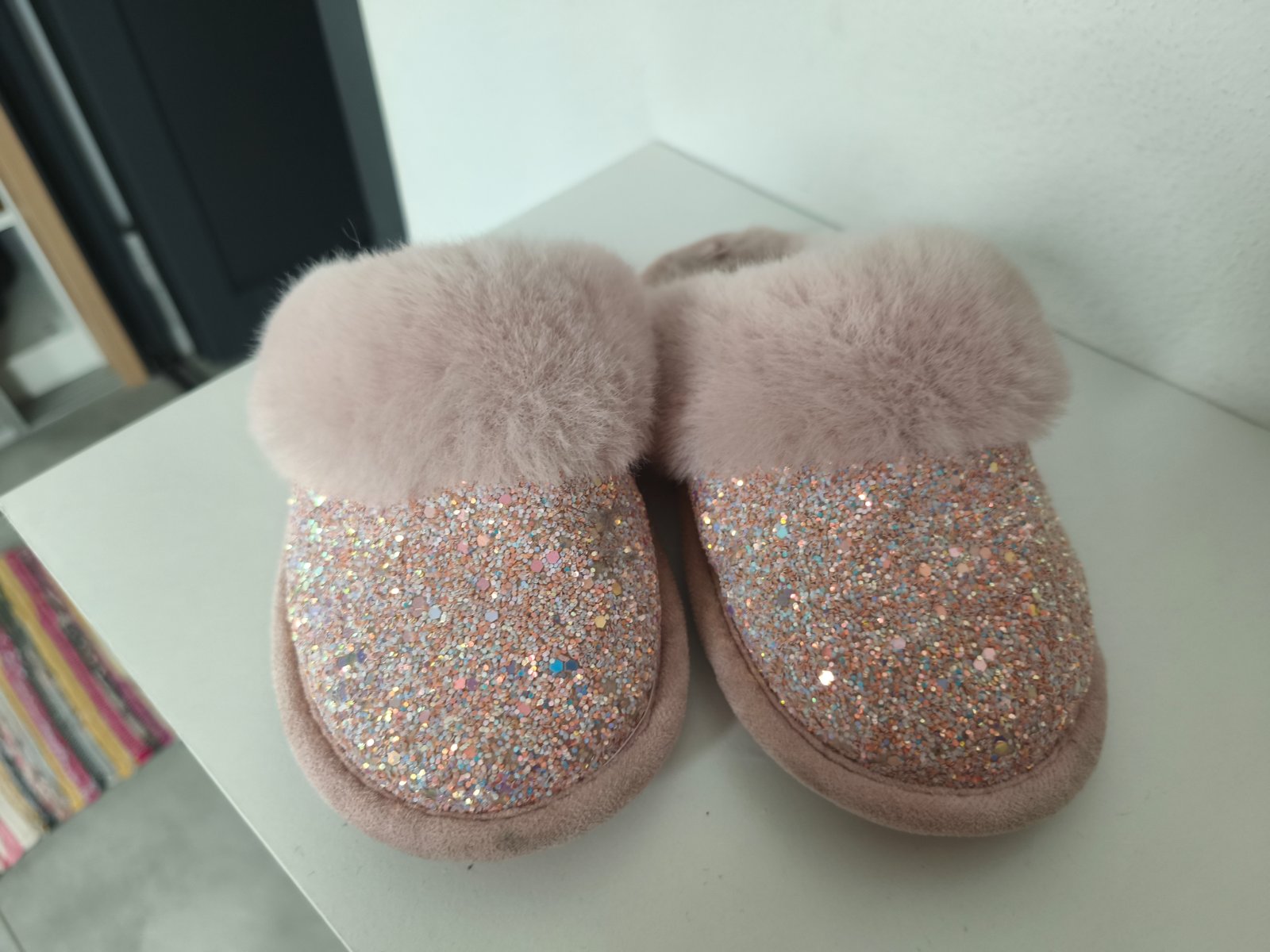 Makucke papucky pre princeznu vo veku 4-6 rokov velkost 28-29. S glitrami a bielymi hviezdickami. Velmi dobry stav.