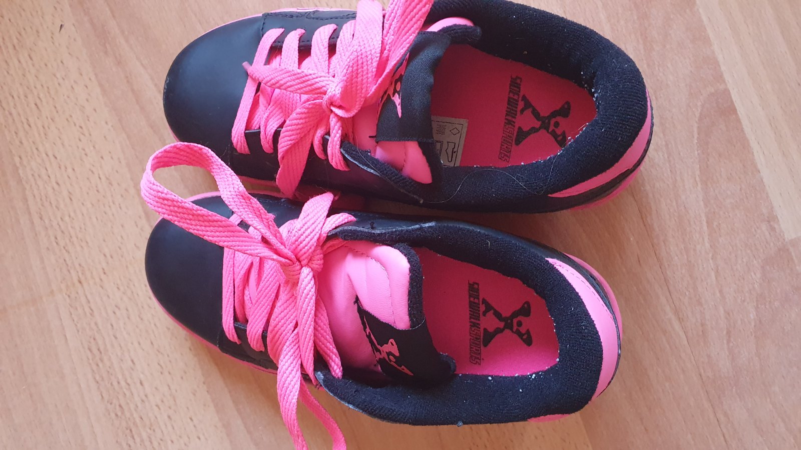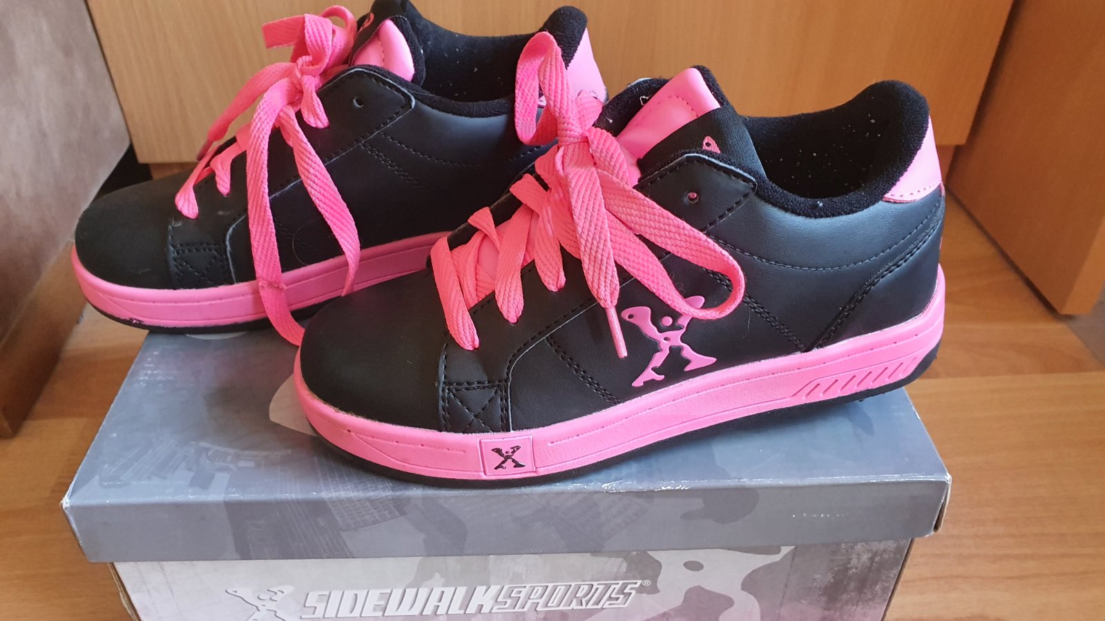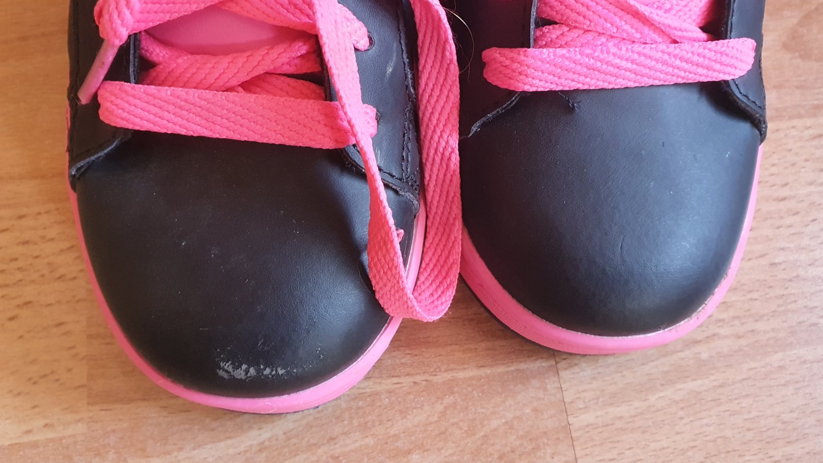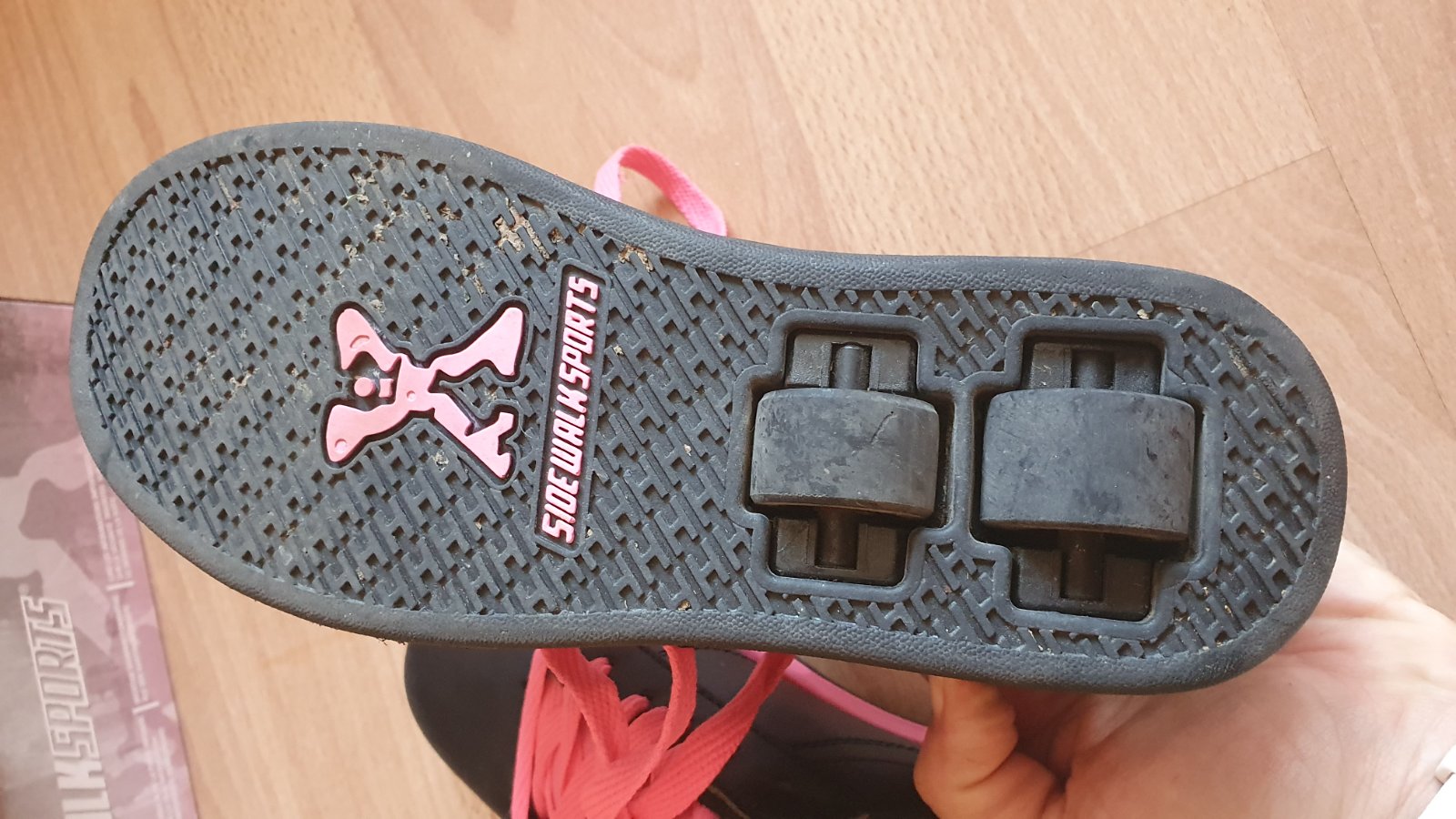 Topánky s kolieskami. Potrebujú rovný povrch. Dcéra ich nosila málo. sú na nich ale škrabance , vidno to na fotkách. Pôvodná cena 46€
