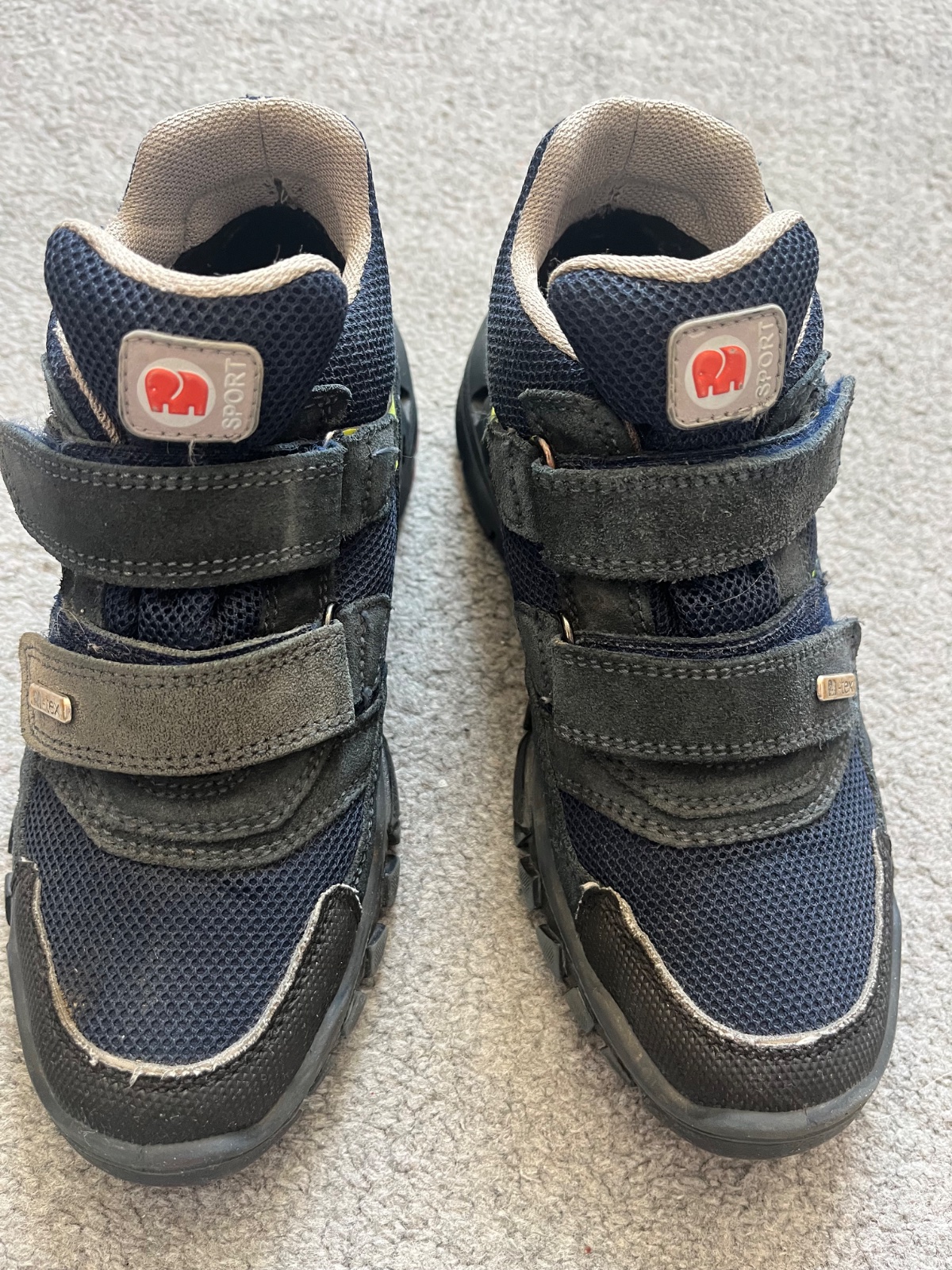 Posuvame topánky ktore dcéra nosila jednu sezonu. Mala ixh veľmi rada, nezatekali a boli teplé. Maju svoje skrabance na špičkách viď.foto