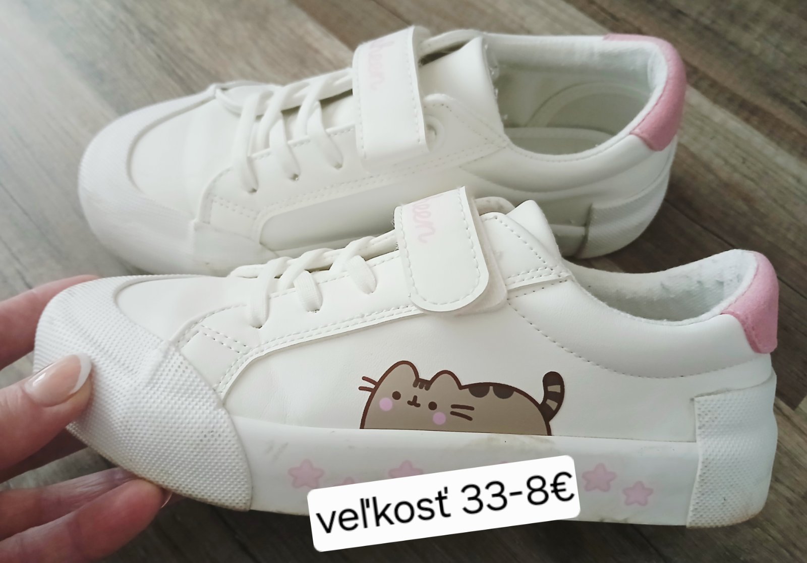 Krásne biele planétky s ružovo- neonovým lemom. Nenoseze, lebo sme na nich zabudli. Šnúrka je gumová, netreba viazať.