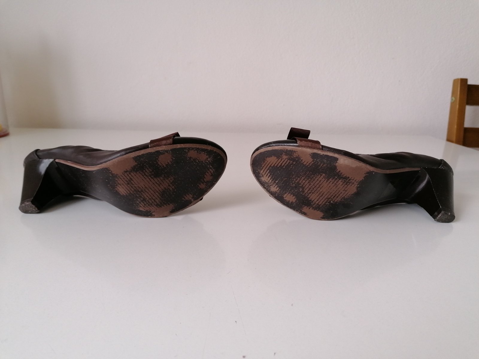 Lodičky asi 5x obuté,v top stave,bez akýchkoľvek poškodení.Pekne prepracované a pohodlné.Kupované v riadnej obuvi,nie u Číňana.P.C.40€.