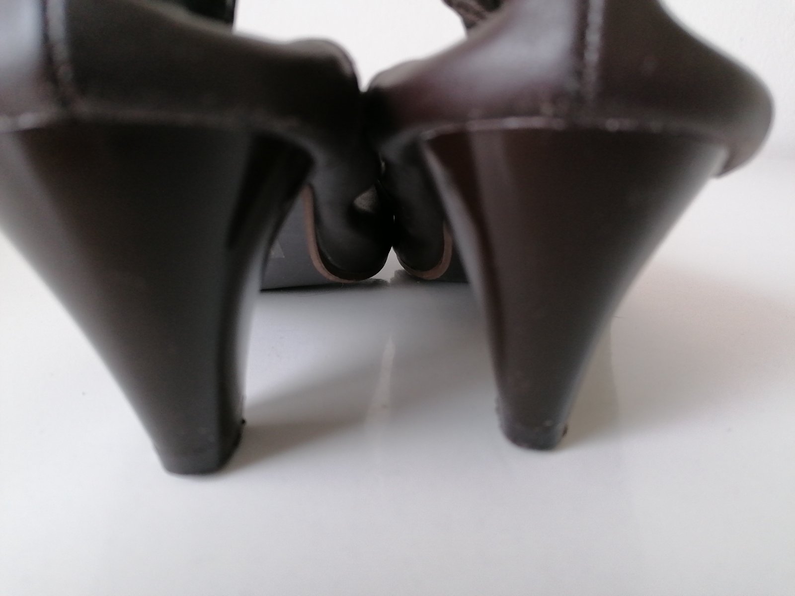 Obuté asi 1-2x. Bez poškodení, čisté, dá sa povedať, že ako nové. Tmavohnedej farby, brúsená koža. Veľmi pohodlné. Pôvodná cena 99,- Eur. Pozri aj iné moje inzeráty, triedim šatník, skrine, - nové...