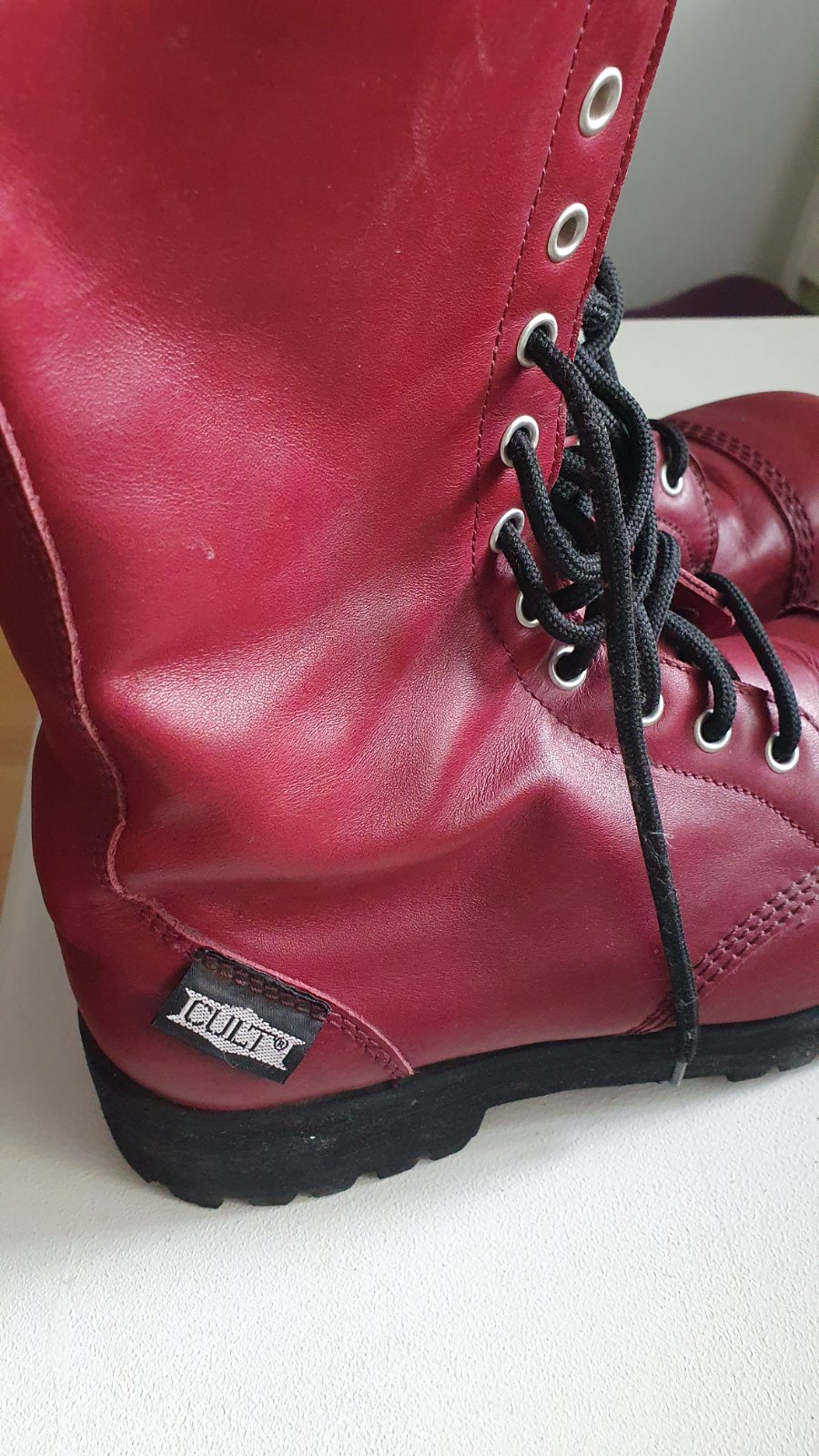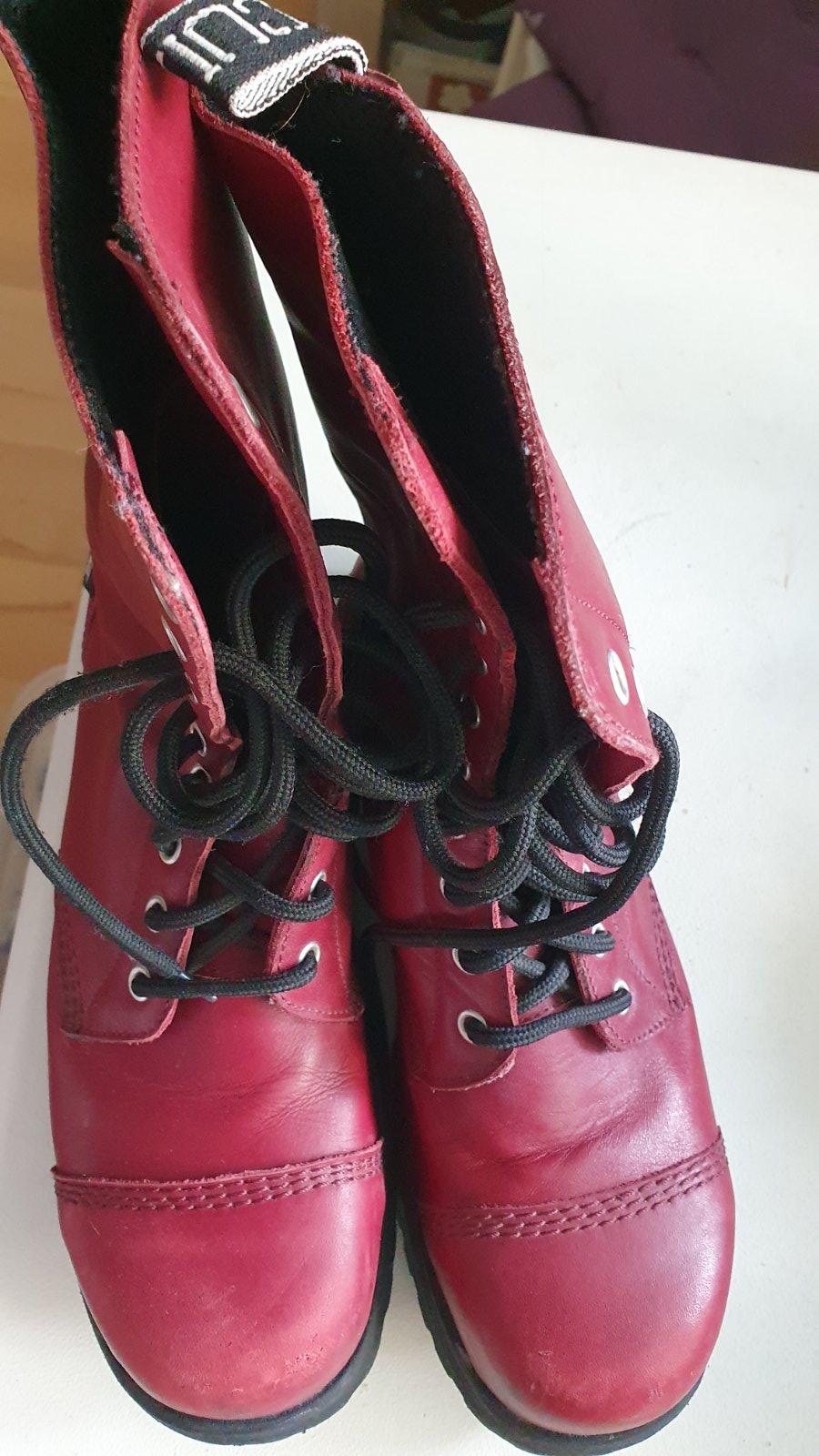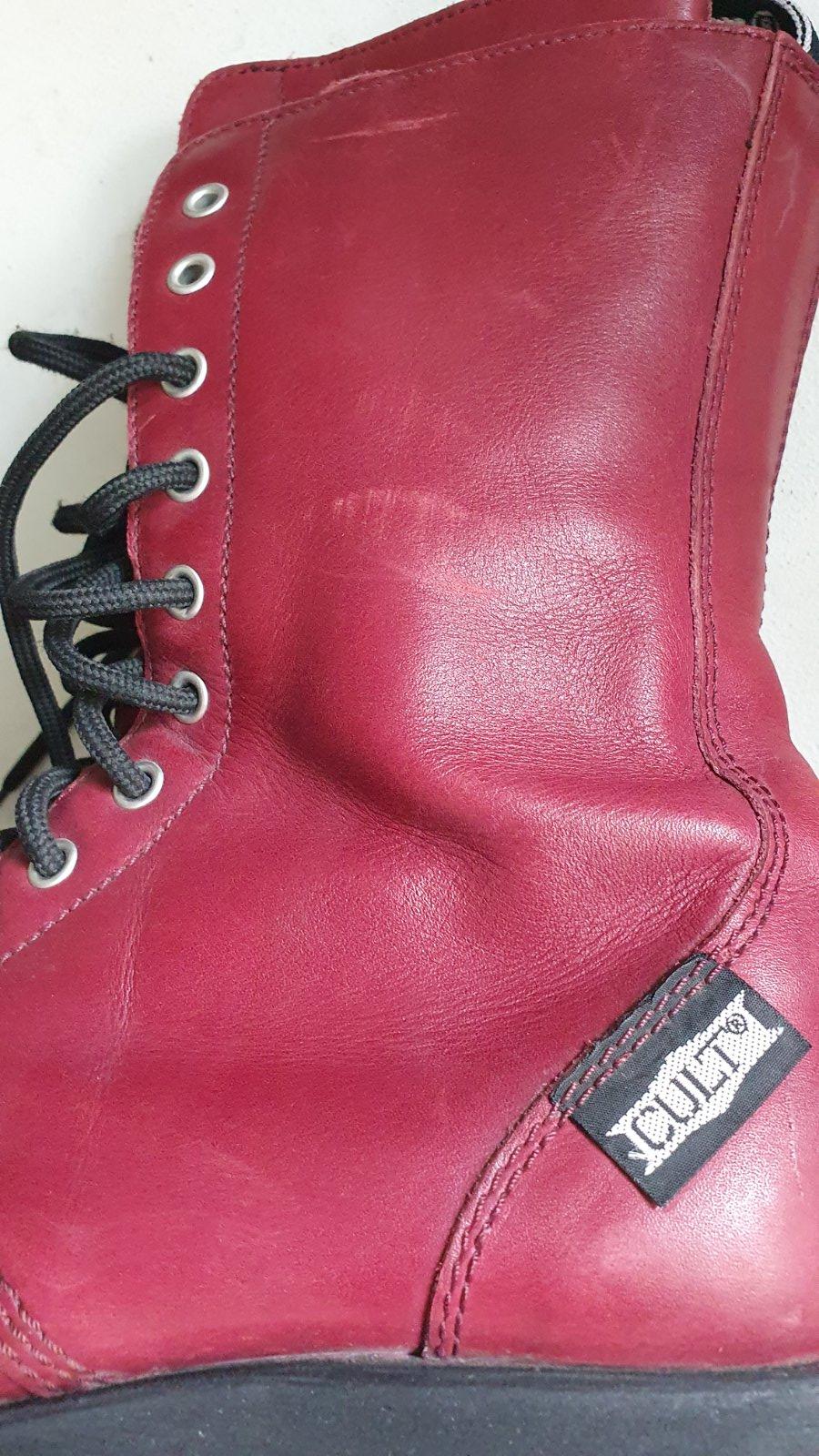 Ťažké boty CULT s oceľovou špičkou červenej bordovej farby