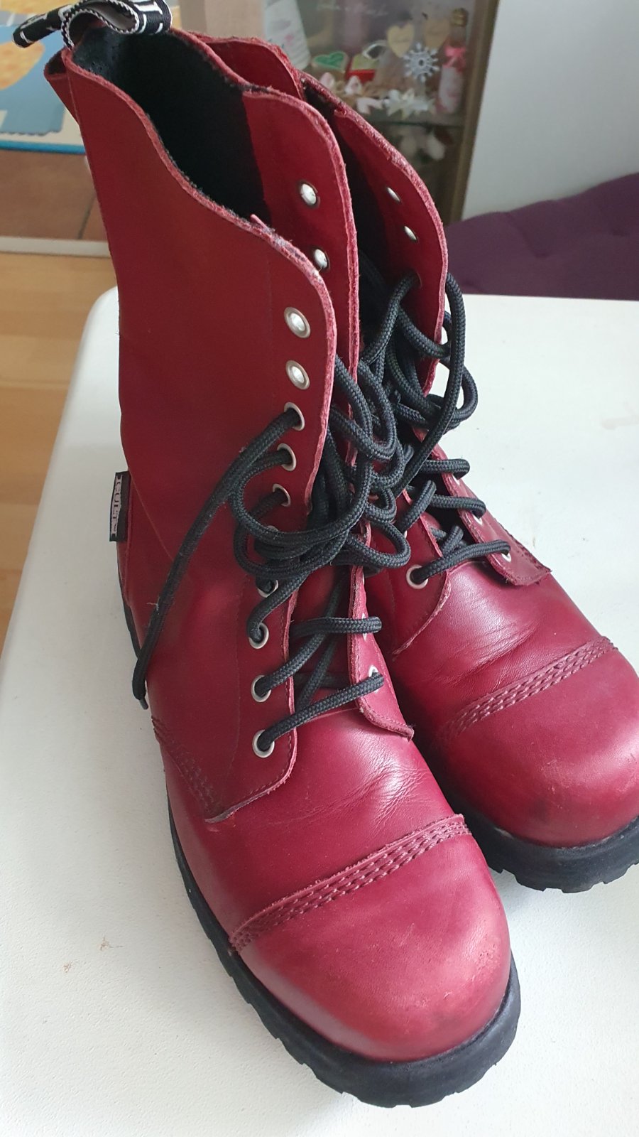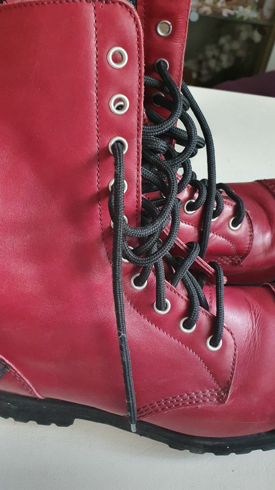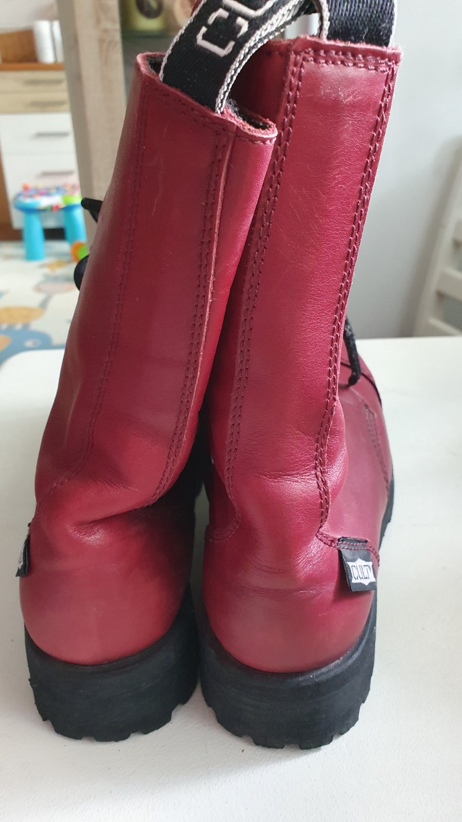 Ťažké boty CULT s oceľovou špičkou červenej bordovej farby