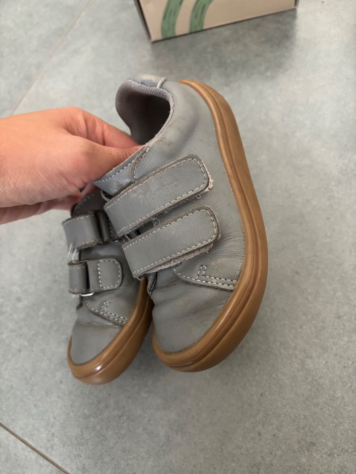 Topánky po jednom dieťati, sú bez poškodení, len koža už nie je čistá. VD: 16,1cm VŠ: 6,6cm