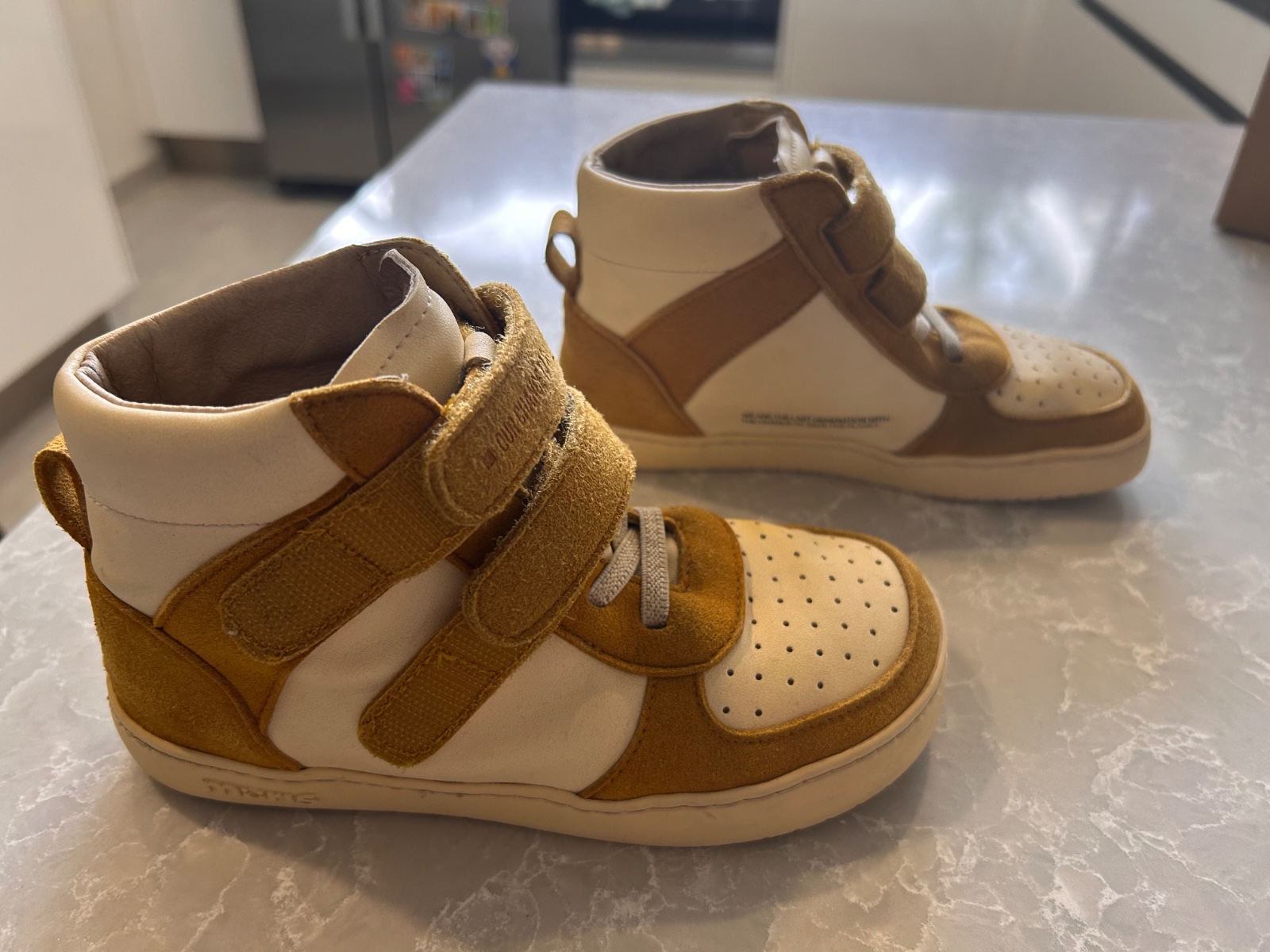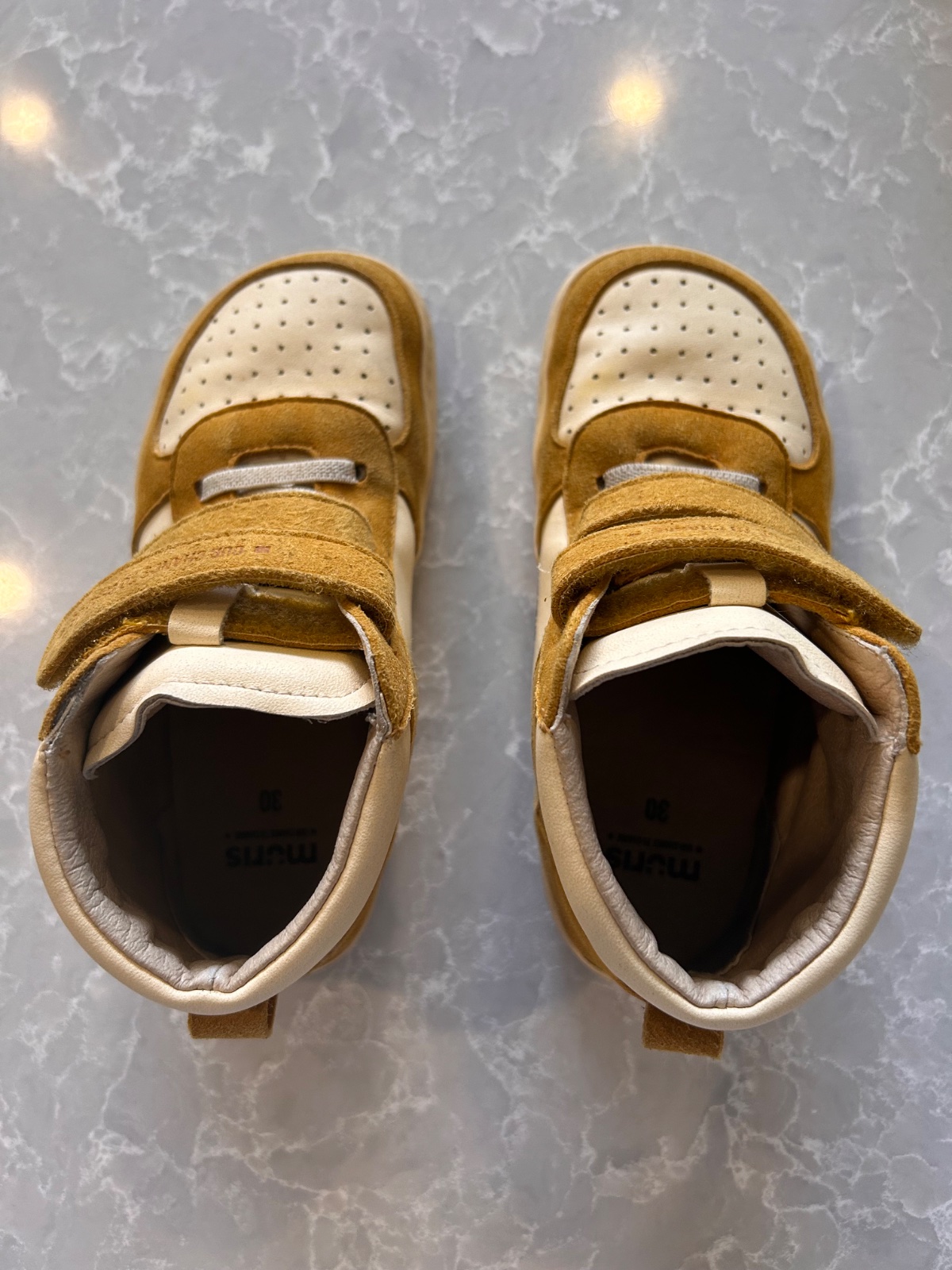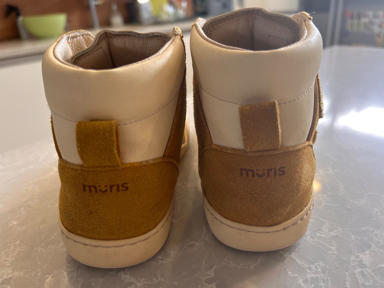 Detske prechodne vyssie barefoot topanky portugalskej znacky Muris - model Muris Riga junior-Mustard, su takej horcicovej farby, celokozene, su neposkodene, neschodene, osetrovane a su impregnovane, su vhodne na sirsie nohy, aj dominantny palec daju sa dobne stiahnut suchymi zipsami ak ma niekto uzsi clenok a znesu aj vyssi priehlavok, su velmi pohodlne a so zimnou vlozkou kludne ponosite aj zaciatkom zimy, mam 2 pary