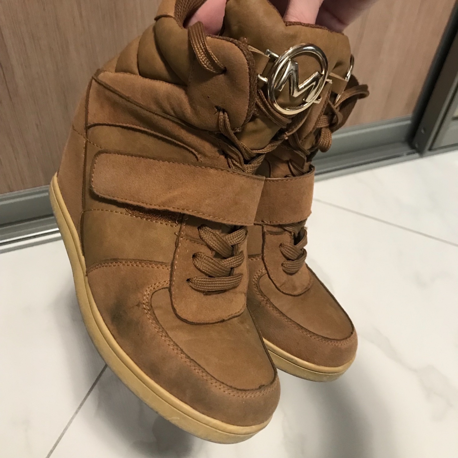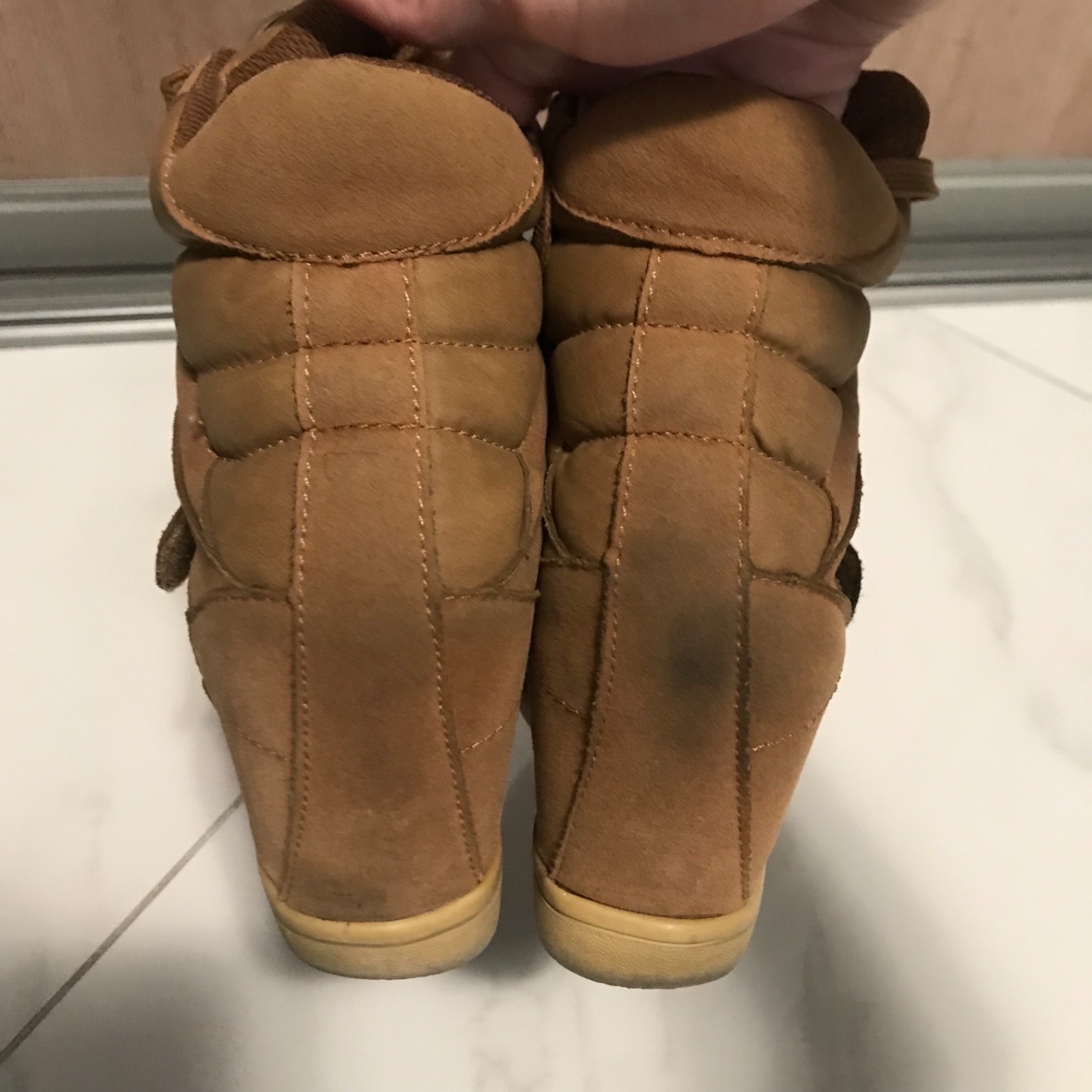 Darujem k nákupu na vyžiadanie topánky na platforme pre nenáročnú na donosenie, majú fľaky, zošúchané päty, olupujú sa.