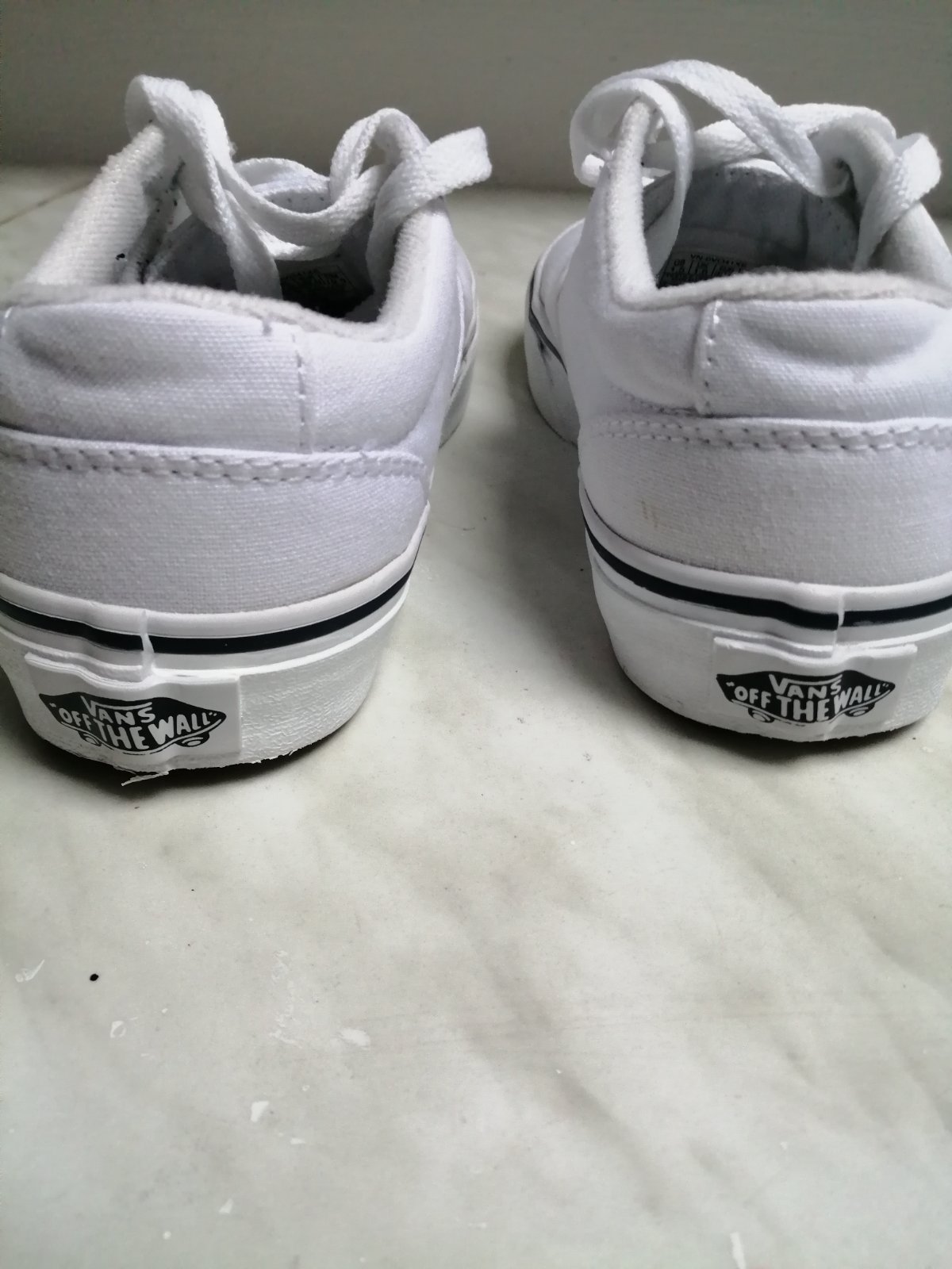 Tenisky sú bielunké v dobrom nosenom stave,troška je v zadu koža ošúchaná na pravej teniske z vnútornej strany viď foto, čo vôbec nevidno .Vnútorná dĺžka je cca 20cm.