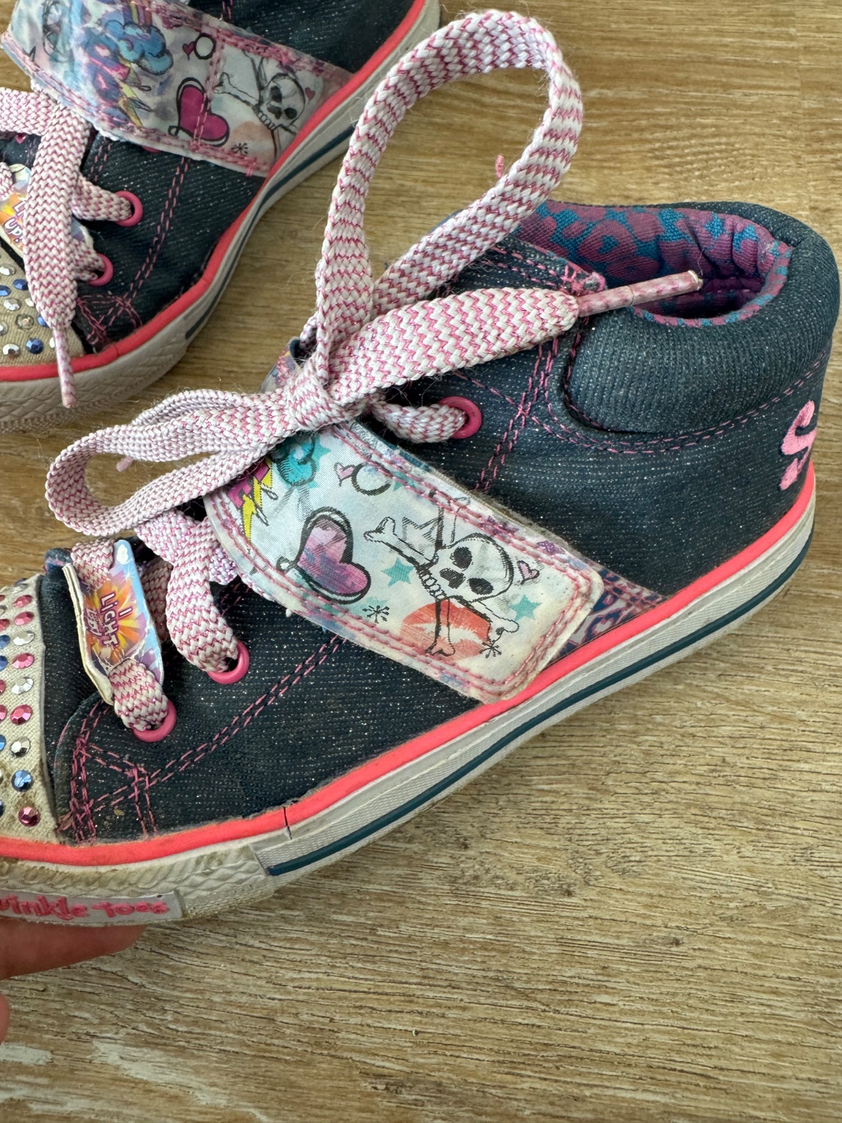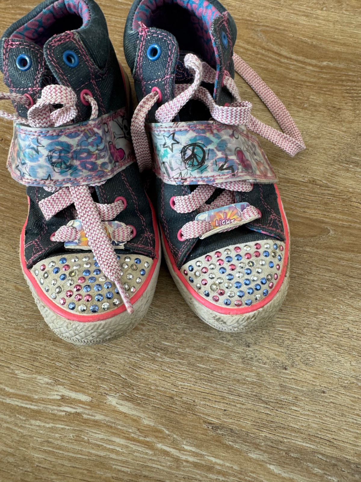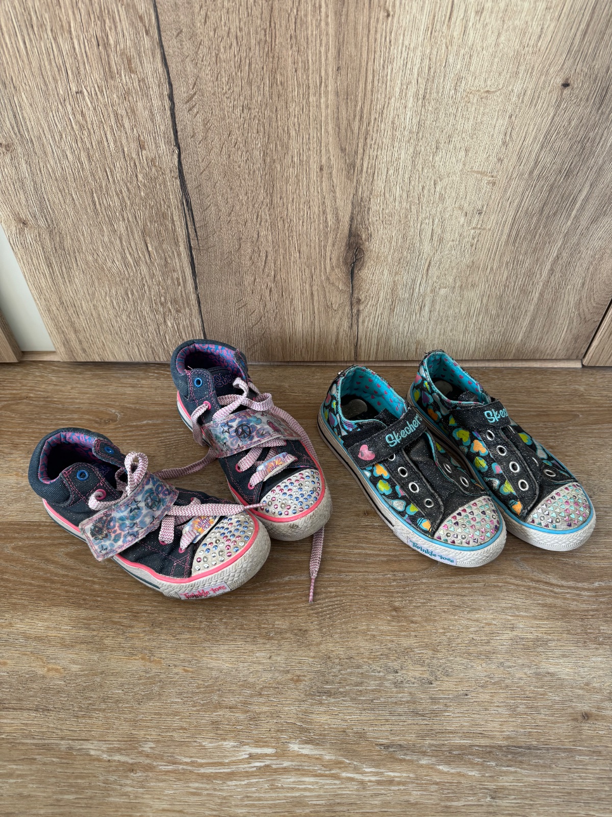 Ponúkam pekné tenisky Skechers vo veľkosti 33 a uvedená vnút. dĺžka je 20,5cm. Boli nosené a nejaké tie známky tam sú. Tie s premenlivou prackou, kde sa menia obrázky podľa uhlu sú v občasne nosenom stave, takže naďalej pekný stav. Nižšie tmavomodré sú dosť nosené aj zničené, ale svietia obe ale prikladám viac menej ako bonus. PC vysoká. Cena spolu za obe. Poštovné podľa taríf.