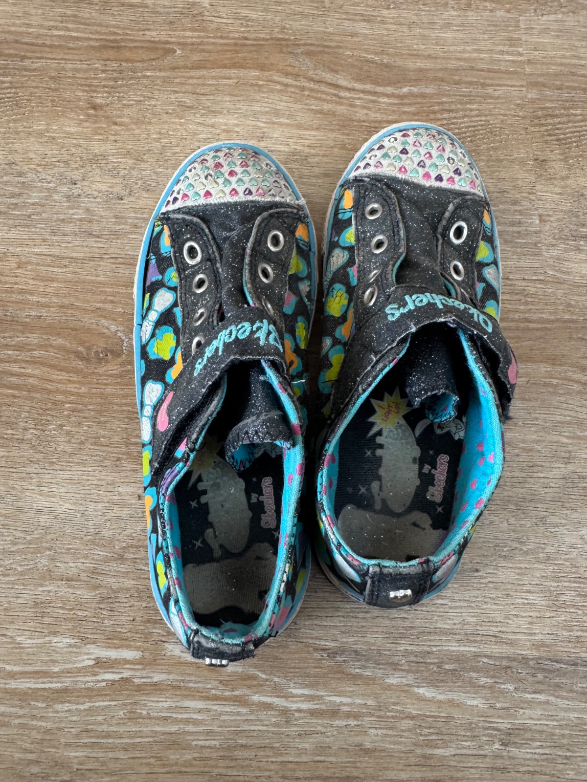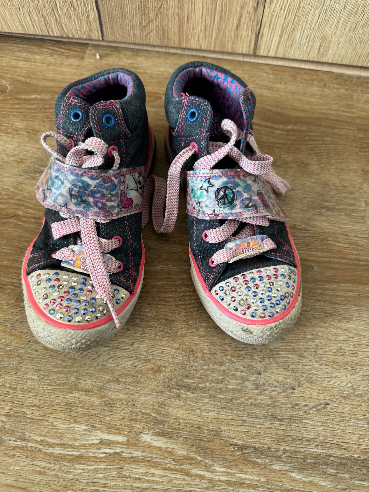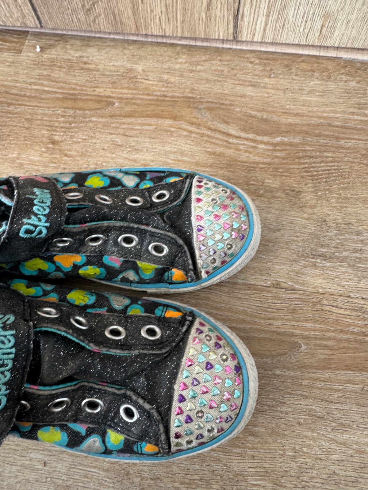 Ponúkam pekné tenisky Skechers vo veľkosti 33 a uvedená vnút. dĺžka je 20,5cm. Boli nosené a nejaké tie známky tam sú. Tie s premenlivou prackou, kde sa menia obrázky podľa uhlu sú v občasne nosenom stave, takže naďalej pekný stav. Nižšie tmavomodré sú dosť nosené aj zničené, ale svietia obe ale prikladám viac menej ako bonus. PC vysoká. Cena spolu za obe. Poštovné podľa taríf.