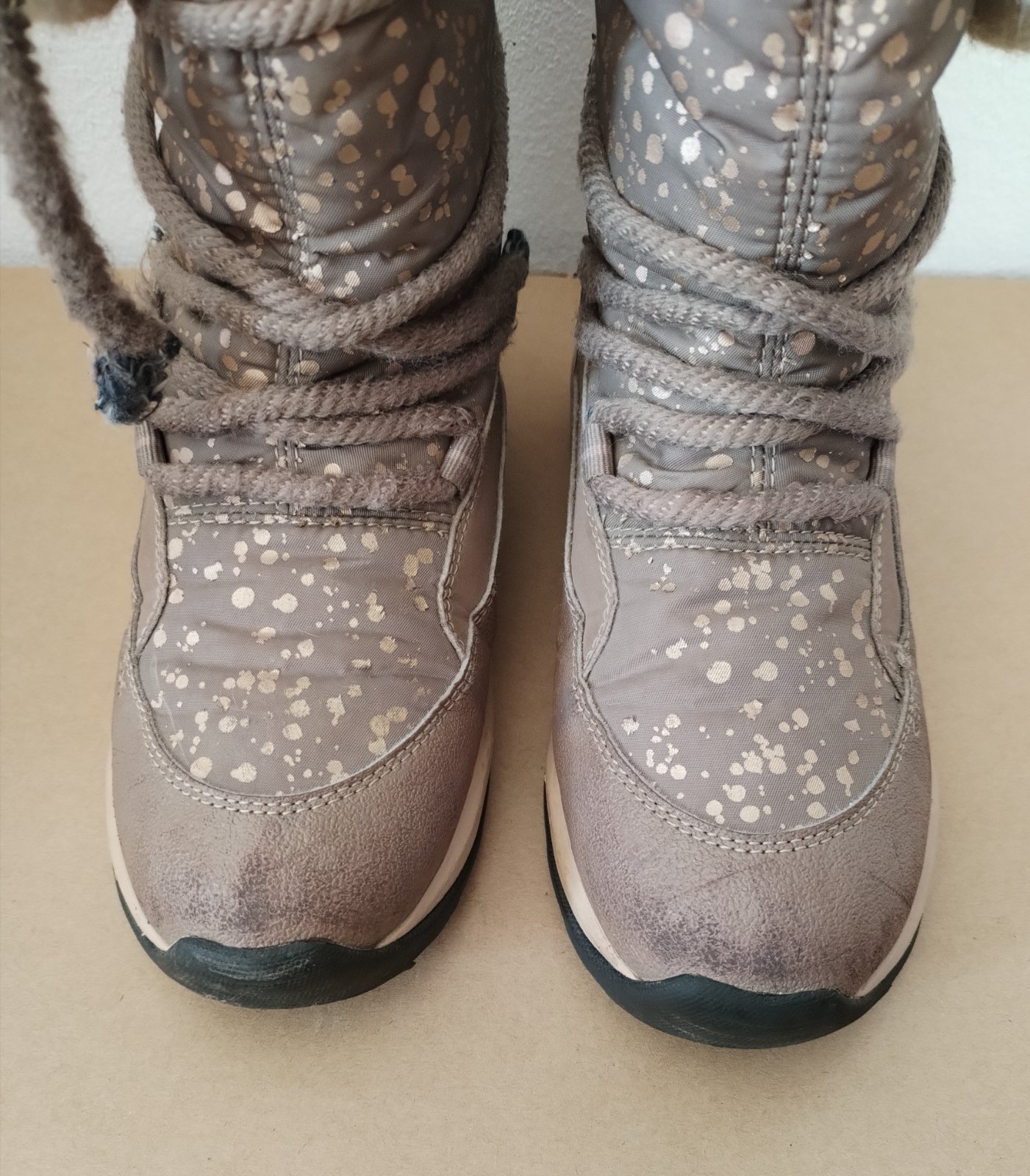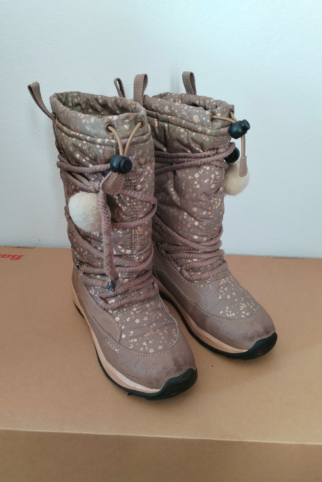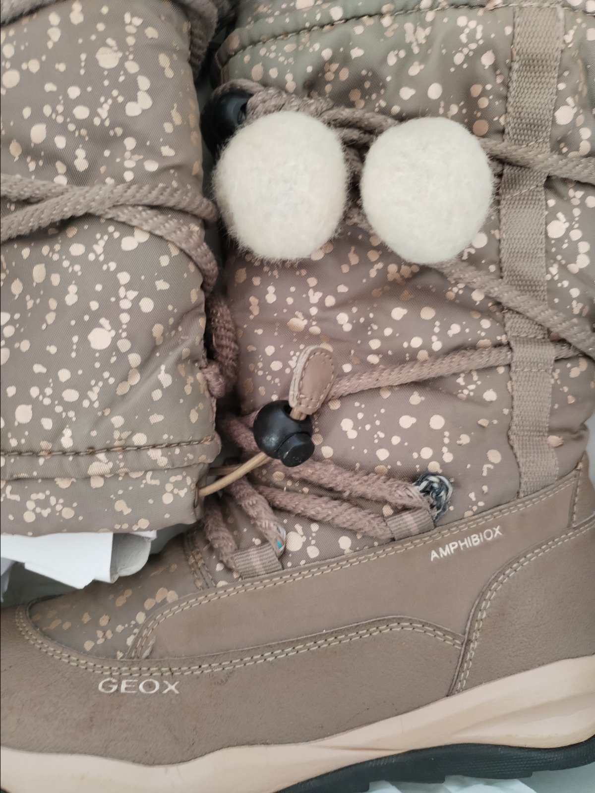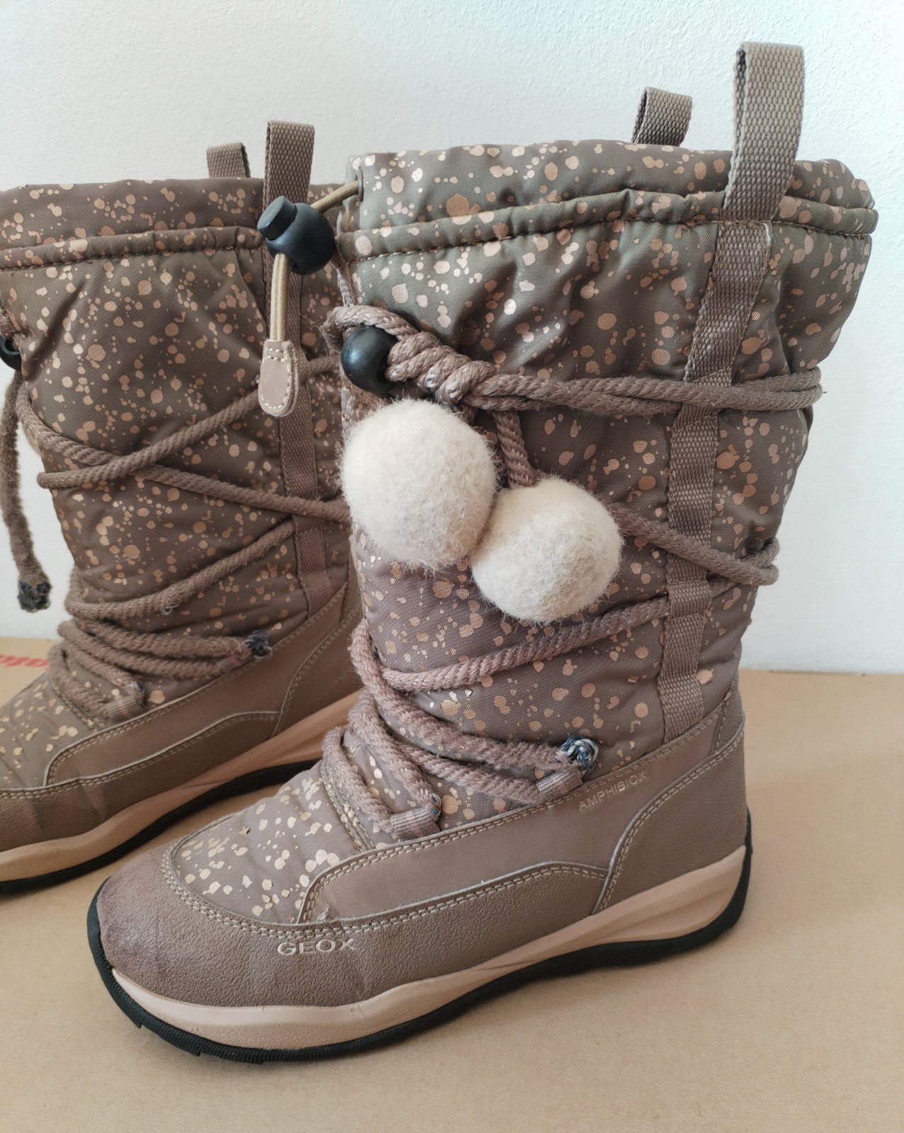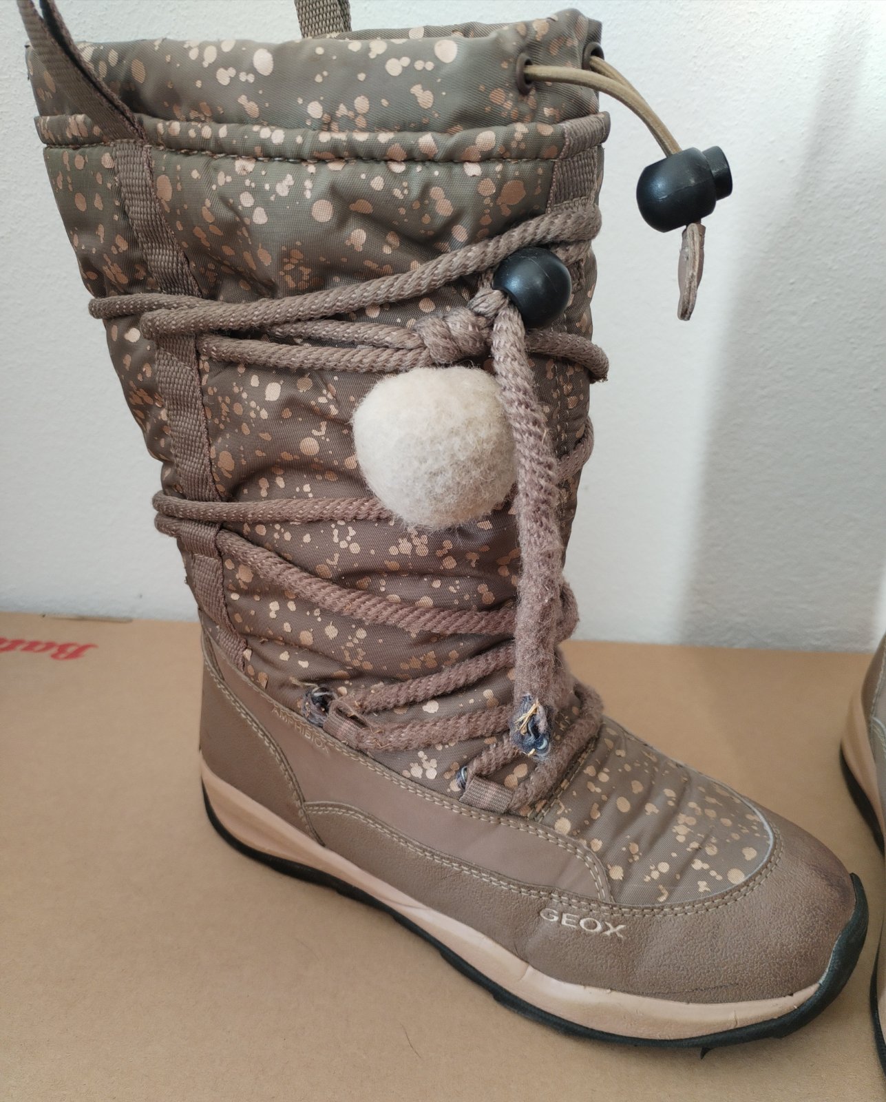 Kvalitné, nepremokavé goretex čižmy Geox Respira, aj do veľmi tuhej zimy. Nosené len mojou dcérou. Majú nedostatky, avšak su plne funkčné. Pravidelne ošetrované impregnačnym sprejom. Šnúrky časom bude treba vymeniť, vpredu šuchnuté a na jednej chyba jedna bambulka. Kupované nové v zlave za 60€.