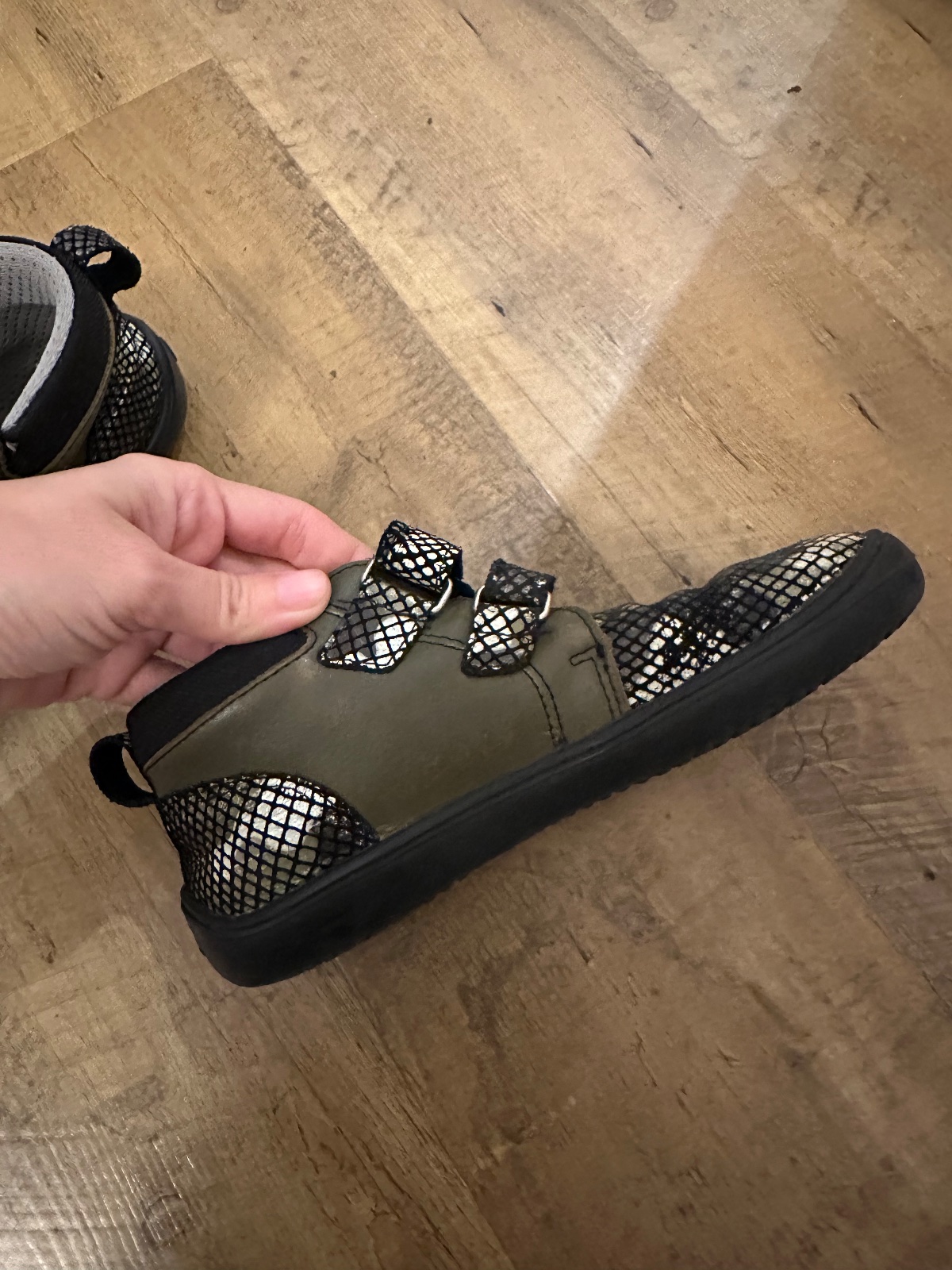 Predám detské zimné členkové barefoot topánky Wildling Tejo Olive s membránou. Veľkosť 32, vnútorná dĺžka 21 cm, vnútorná šírka cca 8,5 cm. Farba olivová s kontrastnou svetlozelenou podrážkou, oran...