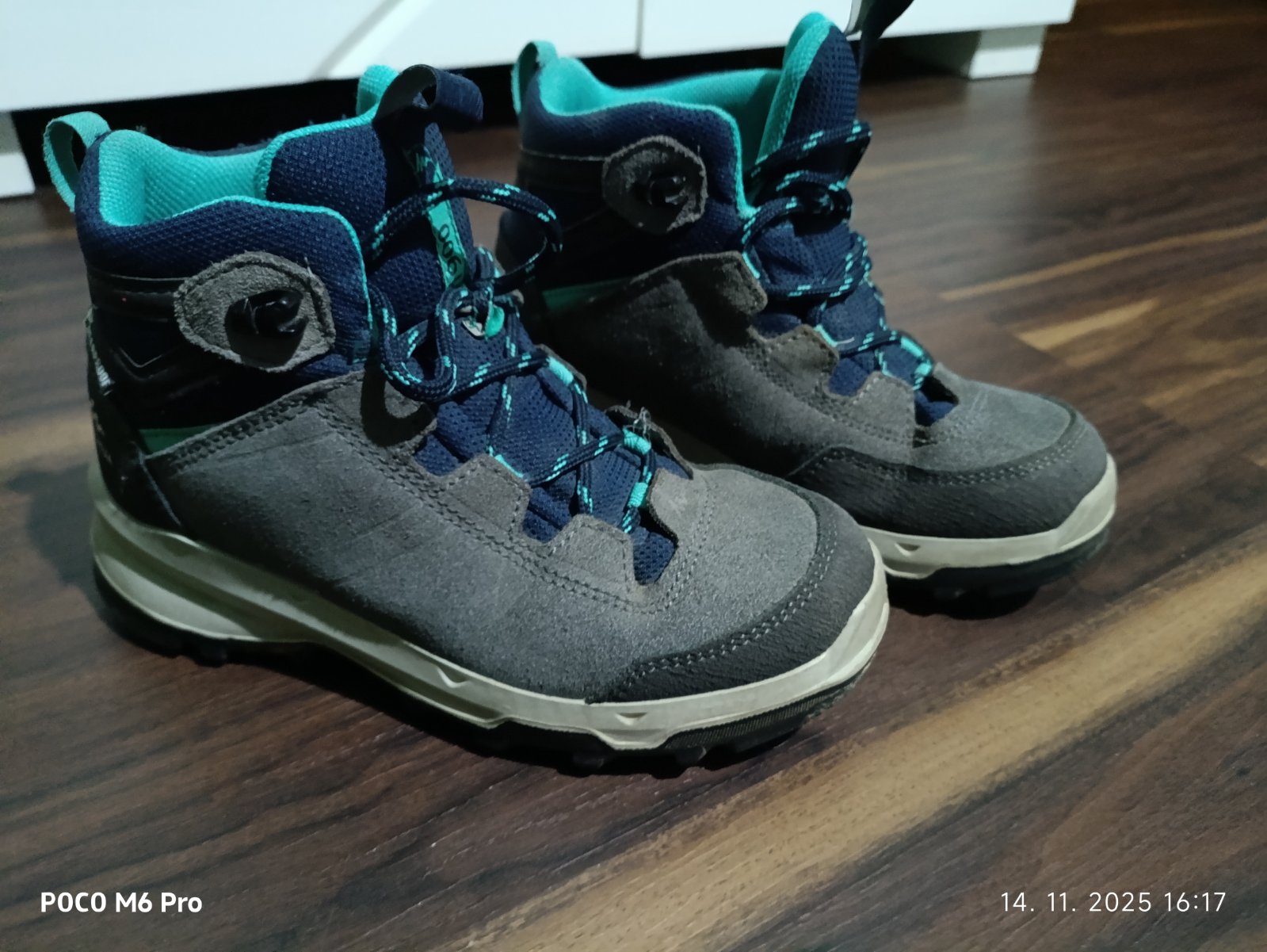 Predám turistické topánky, pevné , známky nosenia vidno len na bledou šedej gume. Pevné držia členok, vhodné aj na bežné jesenné nosenie, nie len na turistiku.
