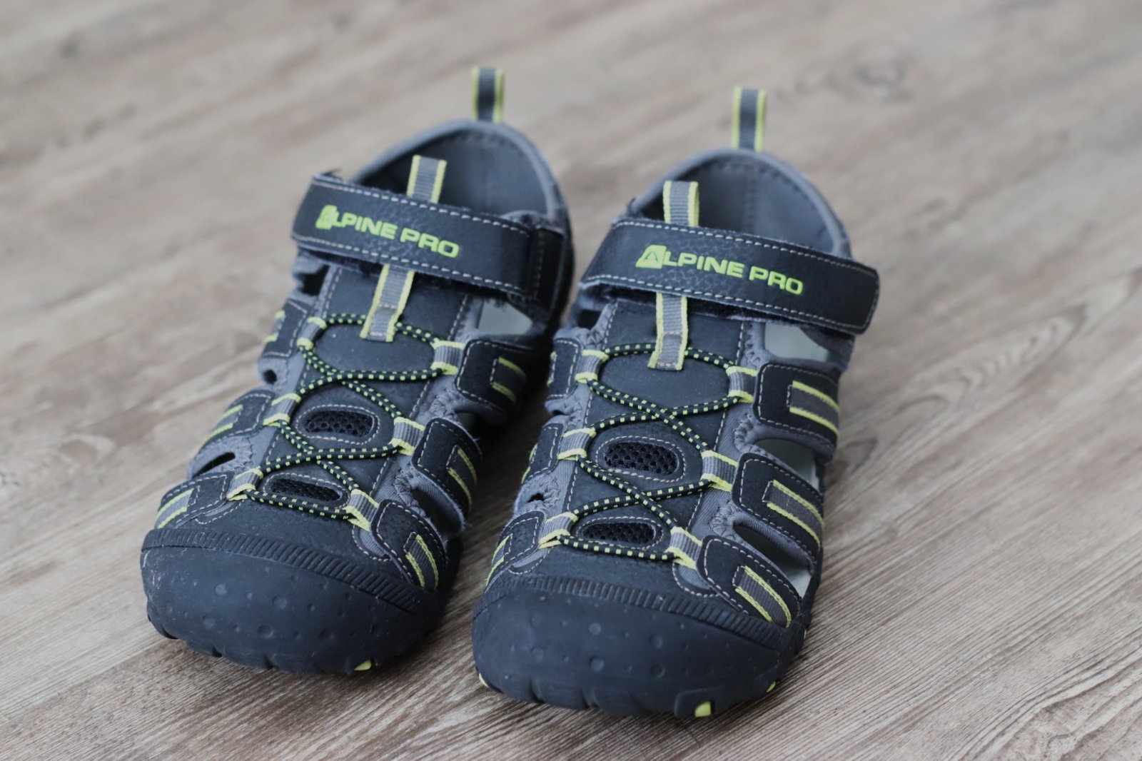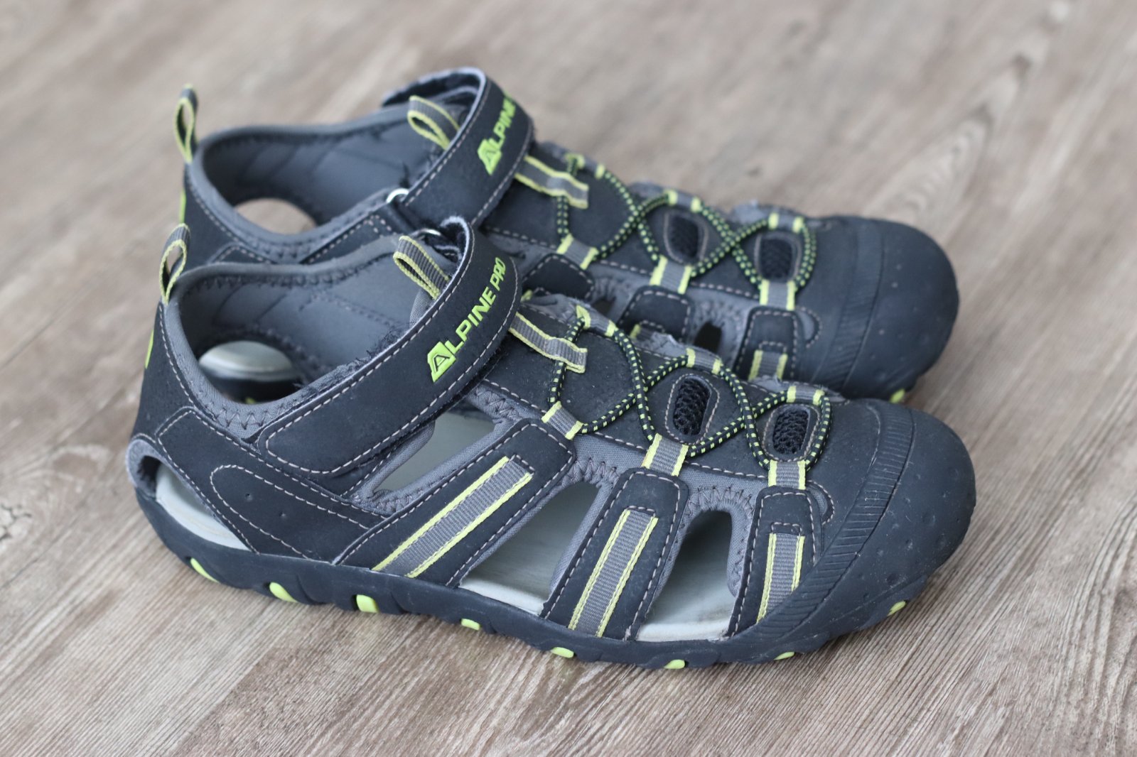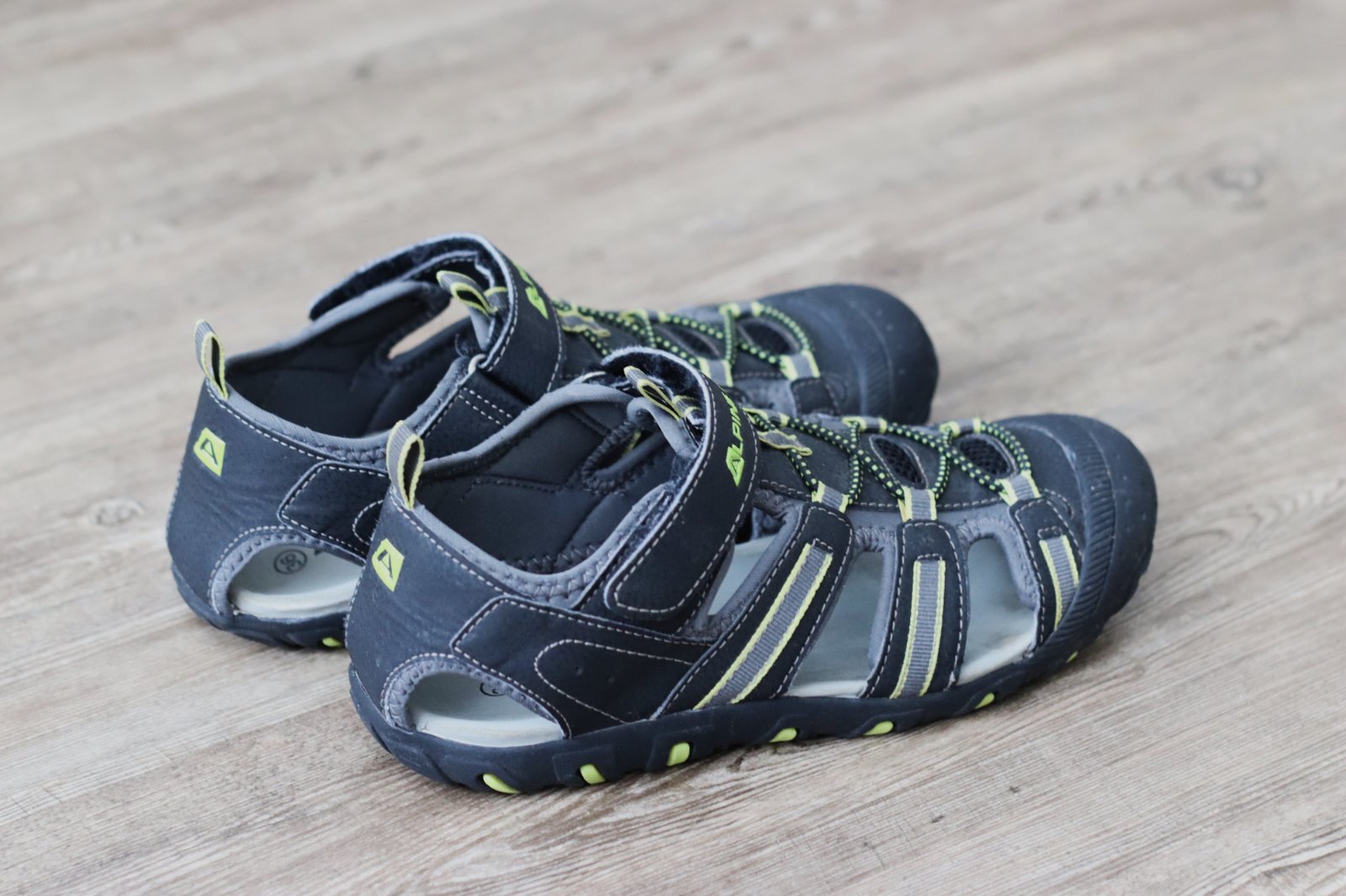 Športové sandále s pevnou špičkou a odolnou podrážkou, takže noha je chránená aj v ťažšom teréne. Málo používané, bez poškodenia.