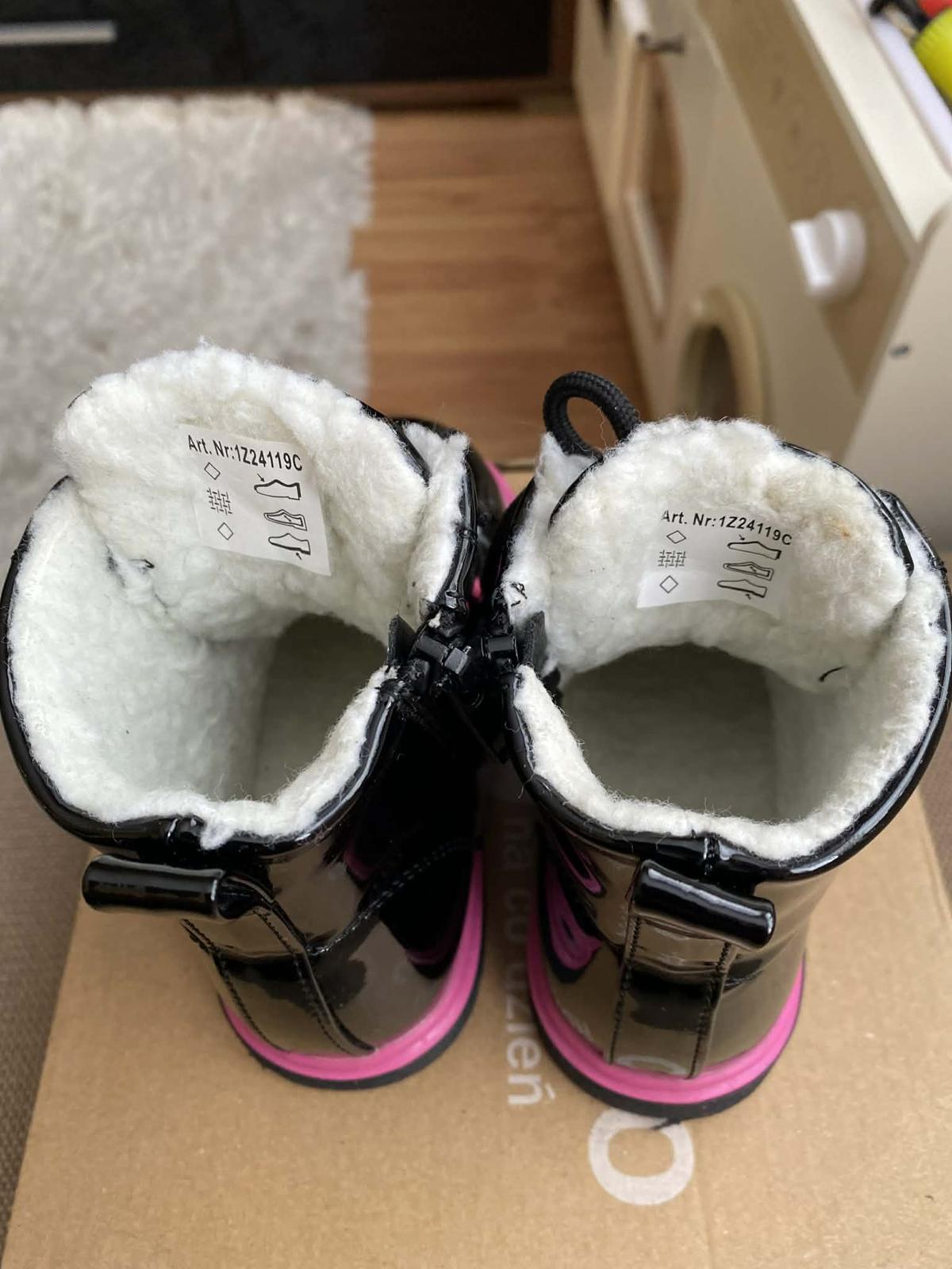 Veľmi málo používané dievčenské zimné zateplené čižmičky vo výbornom stave. Topánky sú v pôvodnom balení, ešte v záručnej lehote, blok k dispozícii.