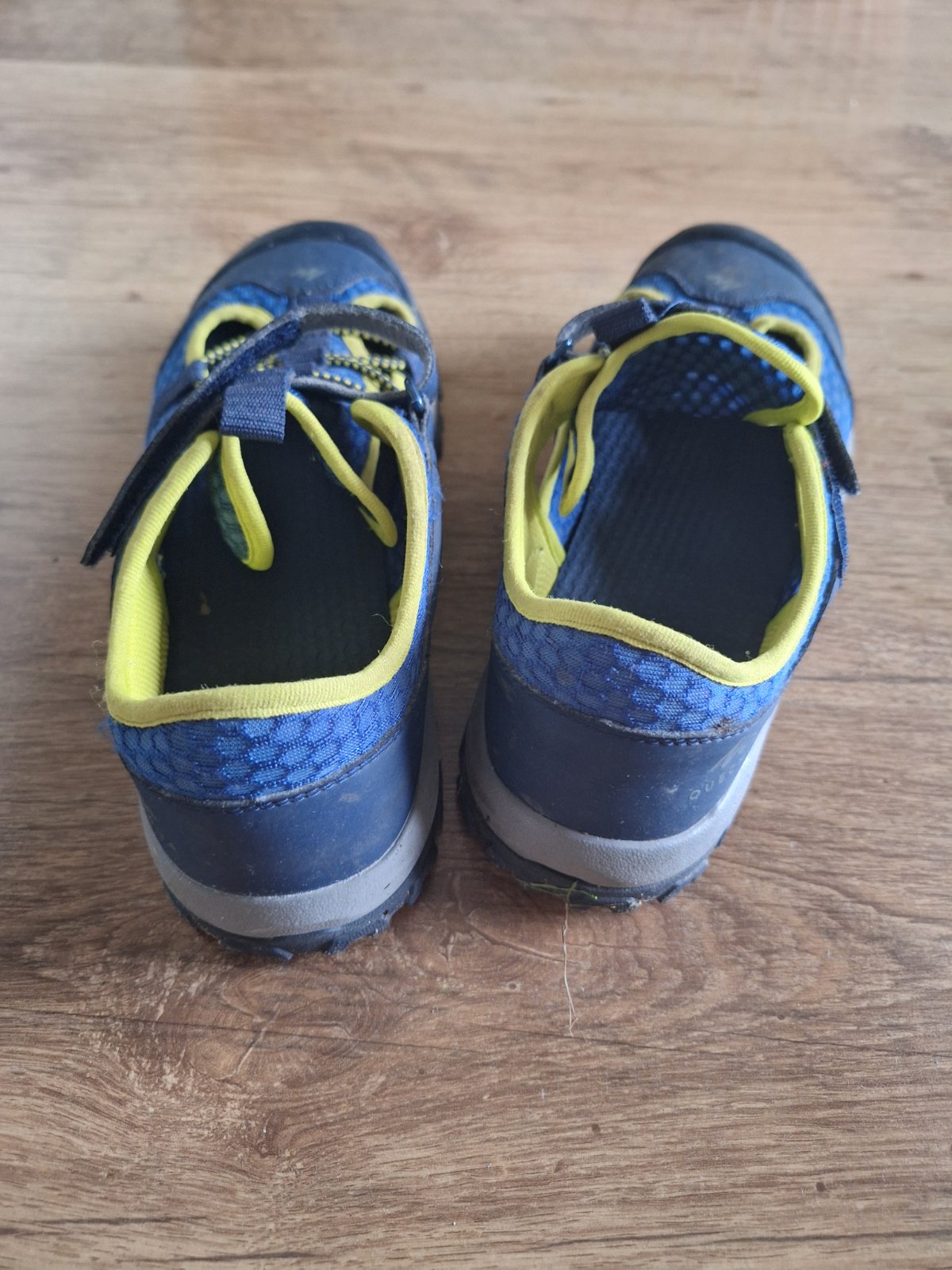 Raz obuté topanky na leto, majú gumenu vložku a sú odvetrane, podrážka pevná, vhodná aj na ľahkú turistiku, gumená špička proti okopaniu. Zapinanie na suchy zips
