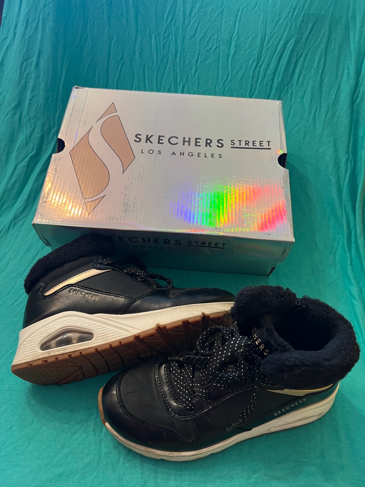 Detské vyššie topánky, ktoré sú určené pre chlapcov. Majú štýlový dizajn ladený do motorkárskeho štýlu. Sú vyrobené od obľúbenej značky Skechers. Majú veselý farebný zvršok doplnený názvom značky. ...