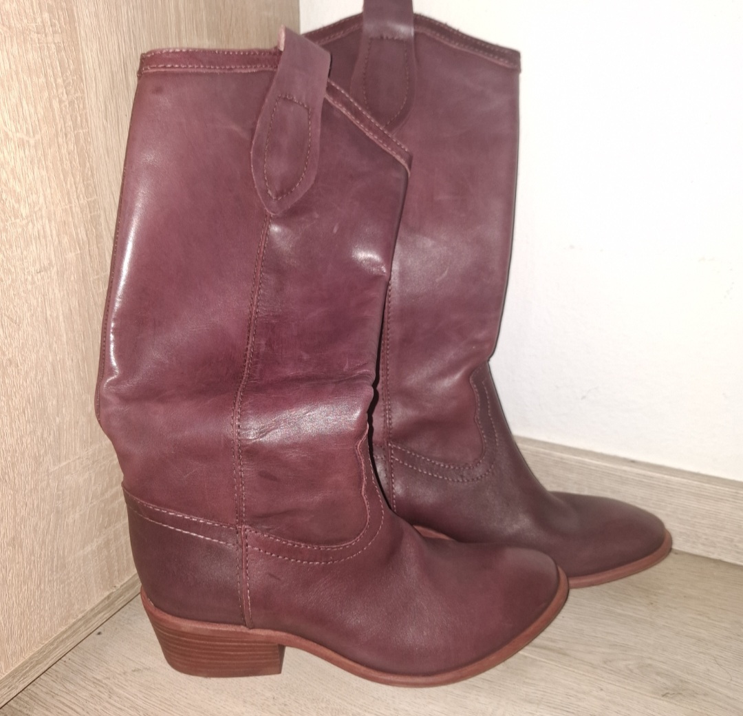 Predám bordové čižmičky v bezchybnom stave, nosené párkrát. Cena 14,90 euro.
