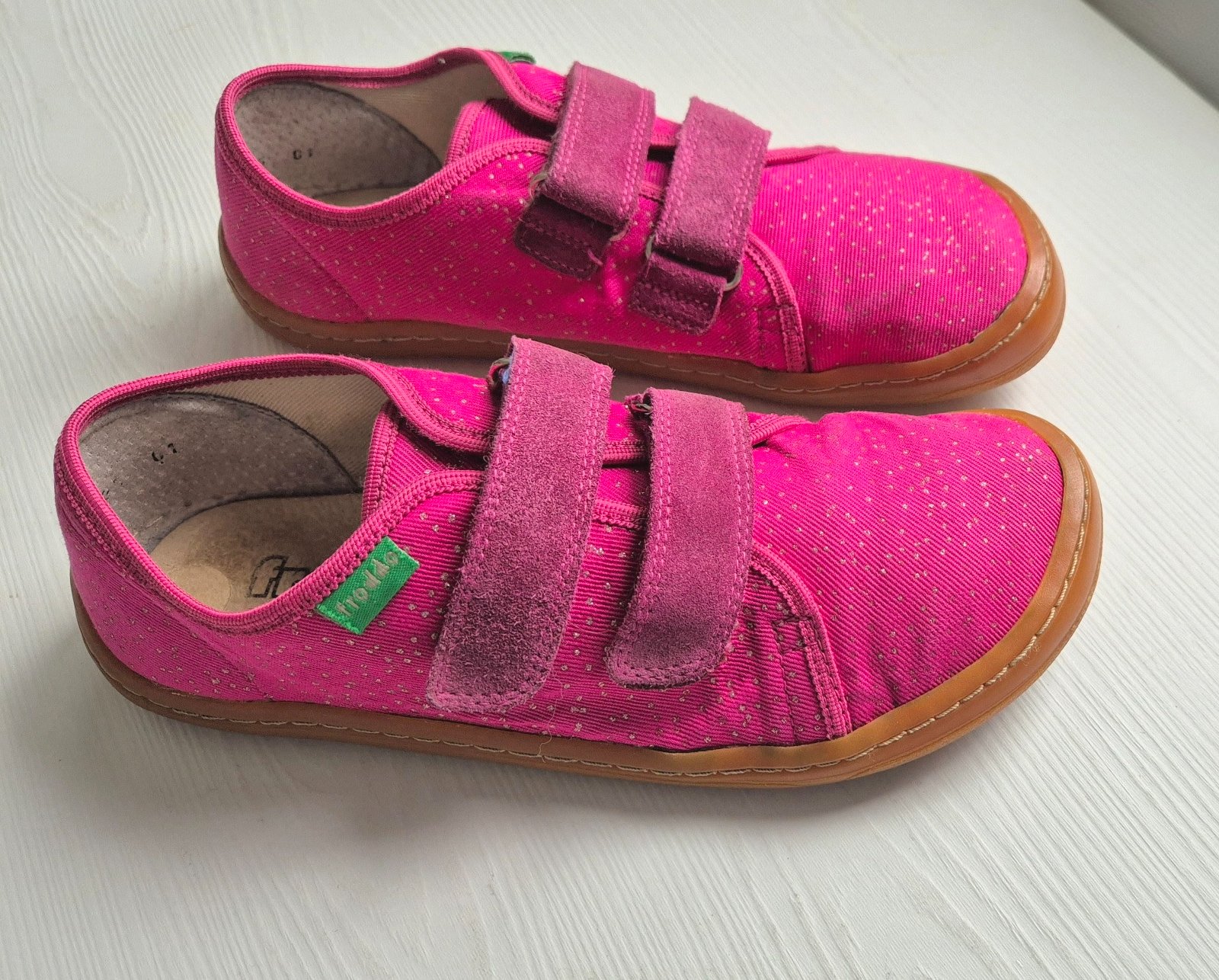 Plátené barefoot tenisky Froddo so zapínaním na dva kožené suché zipsy. Špička je široká a majú nulový drop. Podošva z prírodnej gumy, vyberateľná kožená stielka. Päta je spevnená.