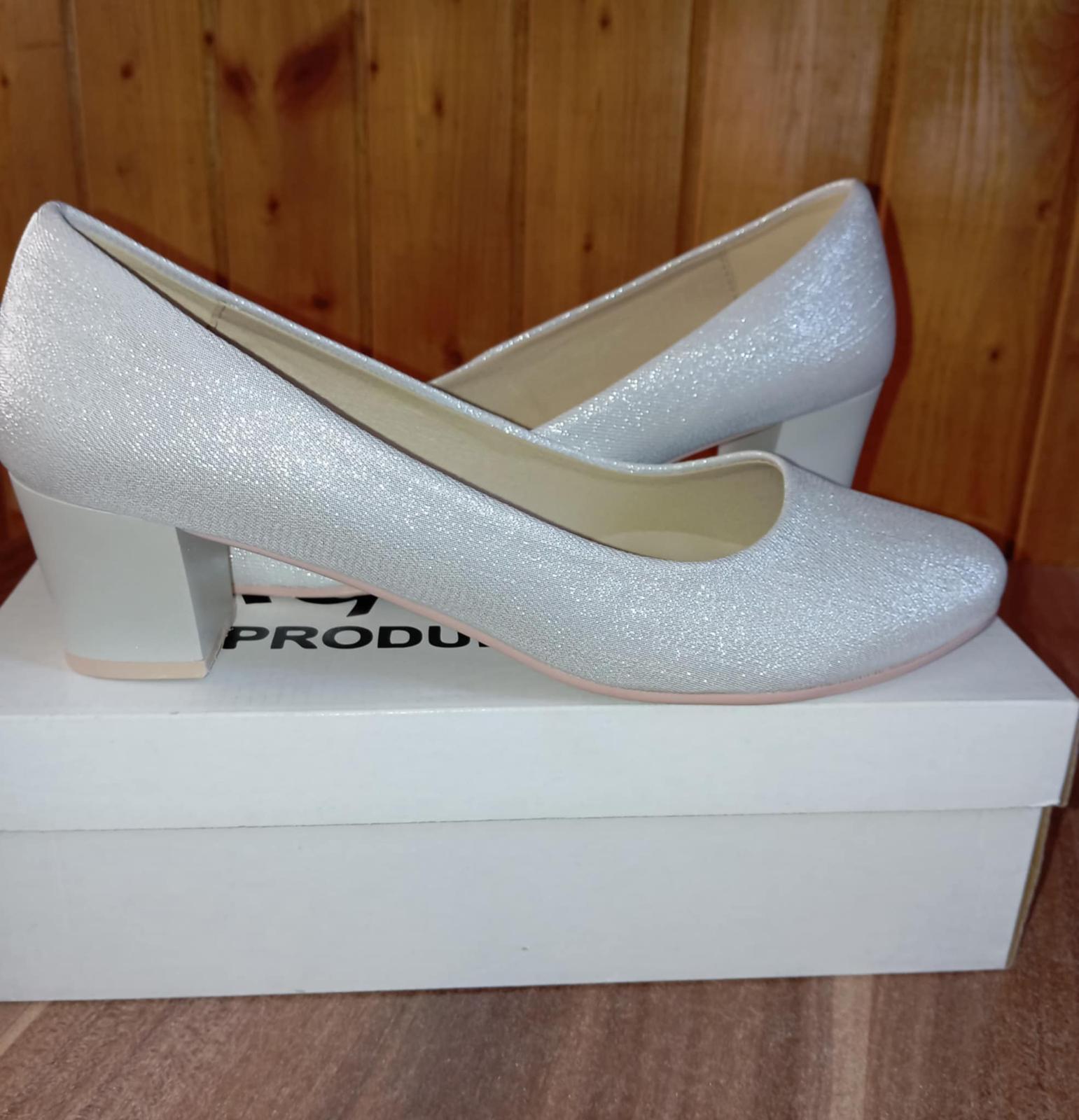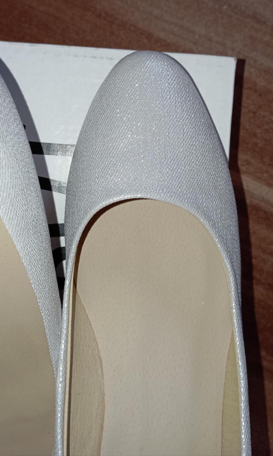 Topánky s odleskom do strieborna , nosené len v interiéri.opatok cca 5cm .PC 24€.Predam za15 plus pošta.