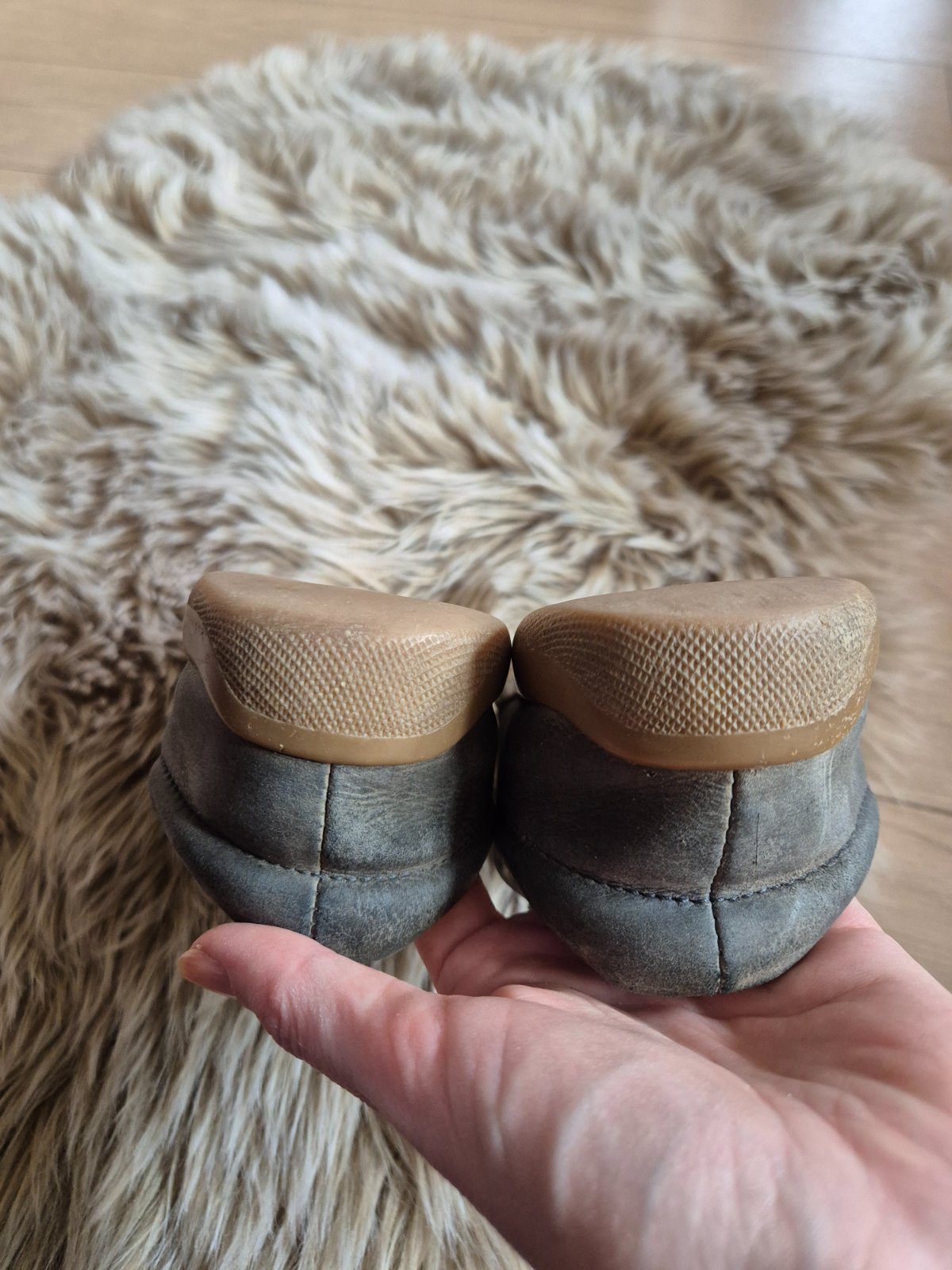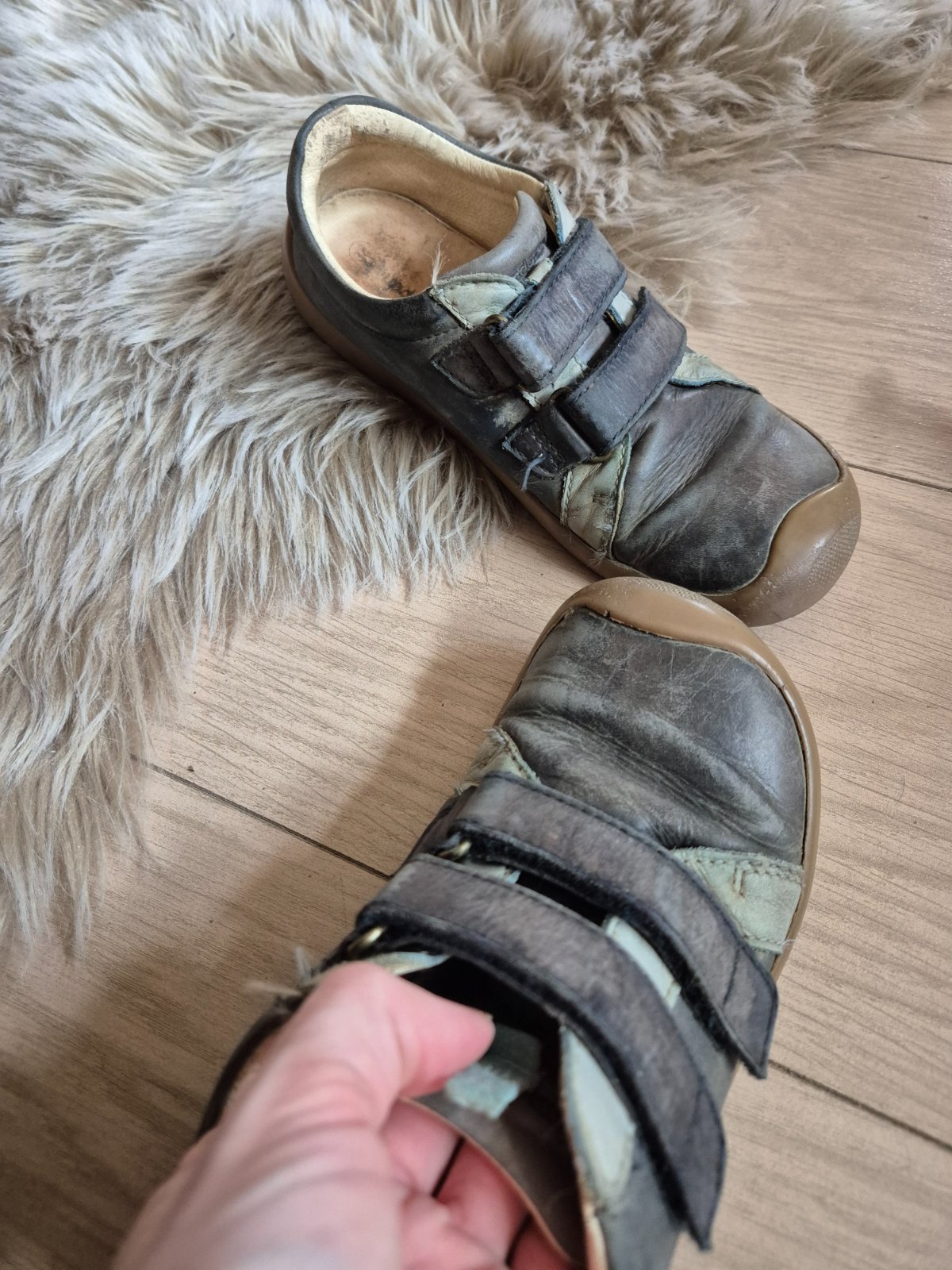 Kožené,vyberatelna stielka tiež koža,na jednom jazku je roztrhnute putko vid na foto. Rozmer 22x7