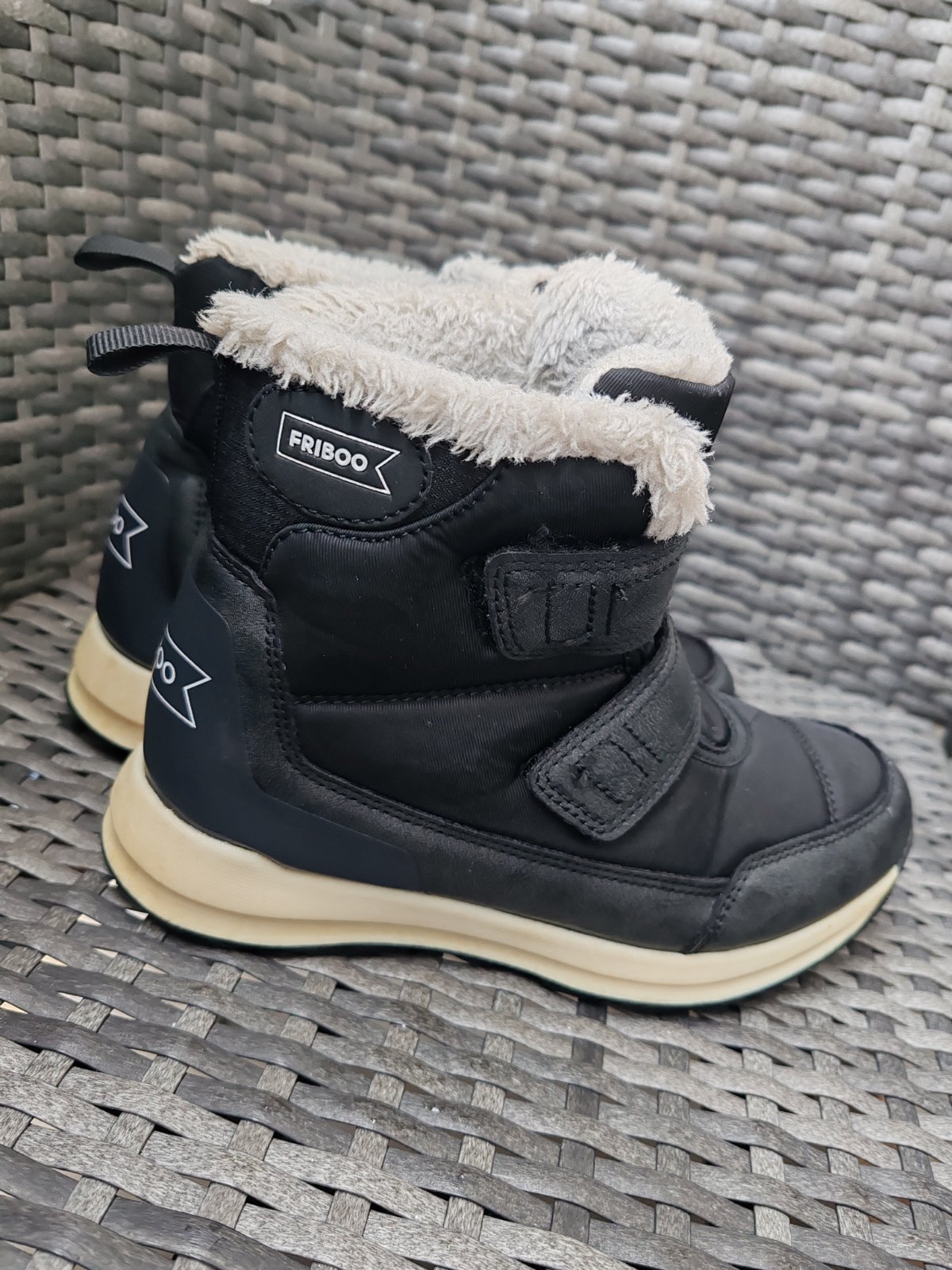 Predám chlapčenské čižmy zn. Friboo vel. 33,kupované na Zalando.sk. Žiadne poškodenia. Ľahké obuvanie, zapínanie na suchý zips, protišmyková podrážka vhodna aj do snehu a na ľad, nešmyka sa v nich. Pridám aj 5 párov ponoziek zdarma.