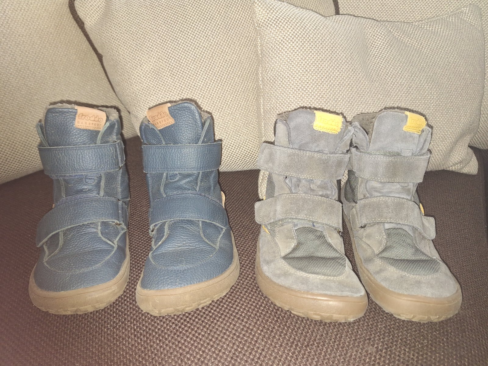 Zimné Froddo kožené topánky z hladkej kože a z brúsenej kože.Bez akýchkoľvek poškodení,top stav.Nosené na striedačku.Kus 35eur,spolu 60eur.