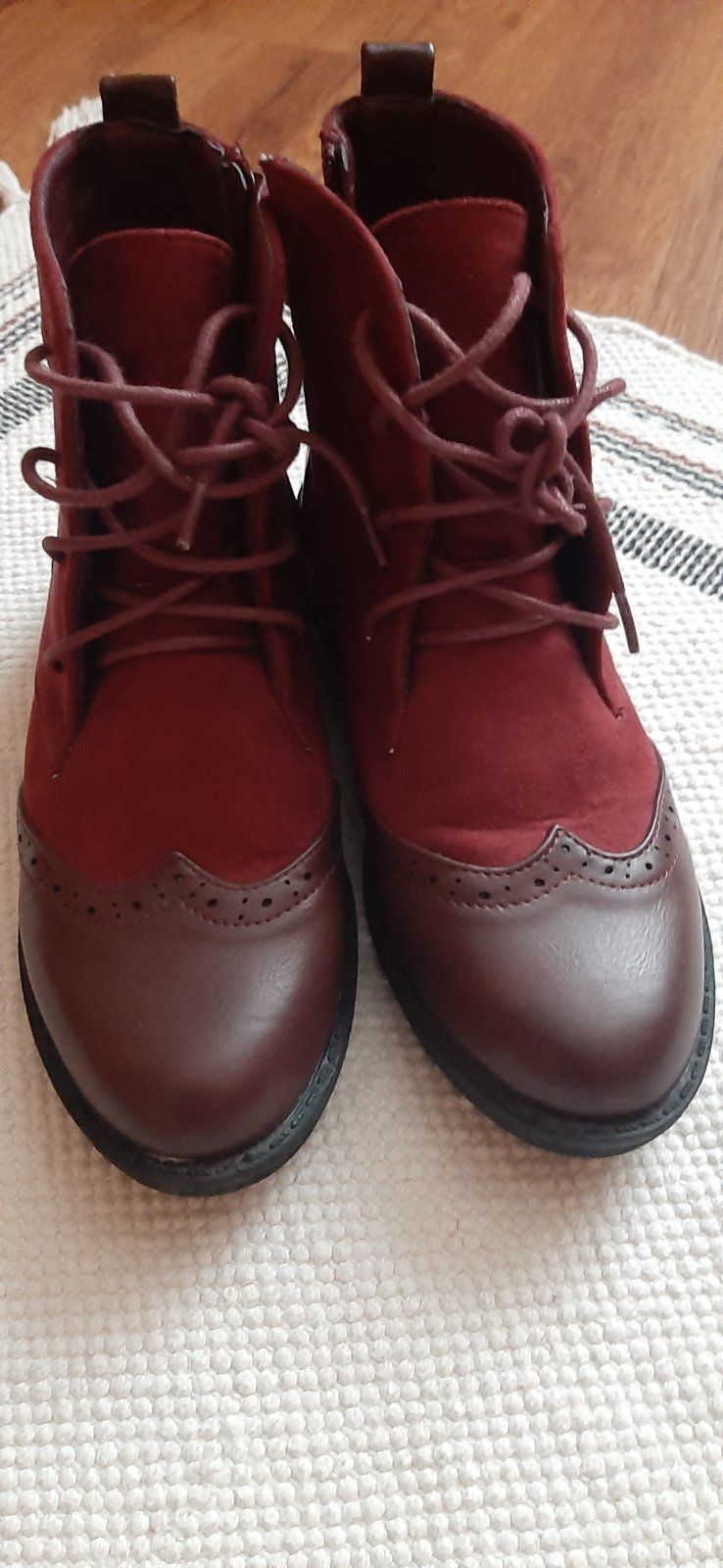 Veľmi dobrý stav, zapínanie na boku na zips, so šnúrkami. Farba tmavšia ako na foto. Mierne zateplené, nie do snehu a tuhej zimy. Ideálne poslať packetou. Vnútor.dĺžka cca.23.