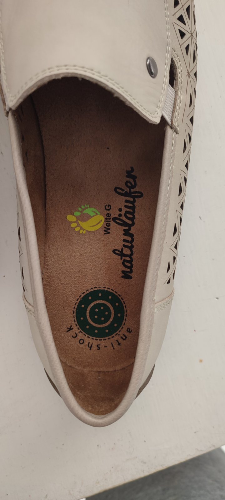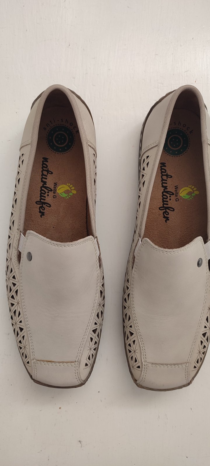 Ponúkam úplne nové dámske perforované kožené topánky značky Naturläufer. Sú veľkosti 40, avšak sedia skôr na 41. Vnútorná dĺžka je 26,5cm. Sú v komfortnej šírke G, na normálne až mierne širšie chodidlá.