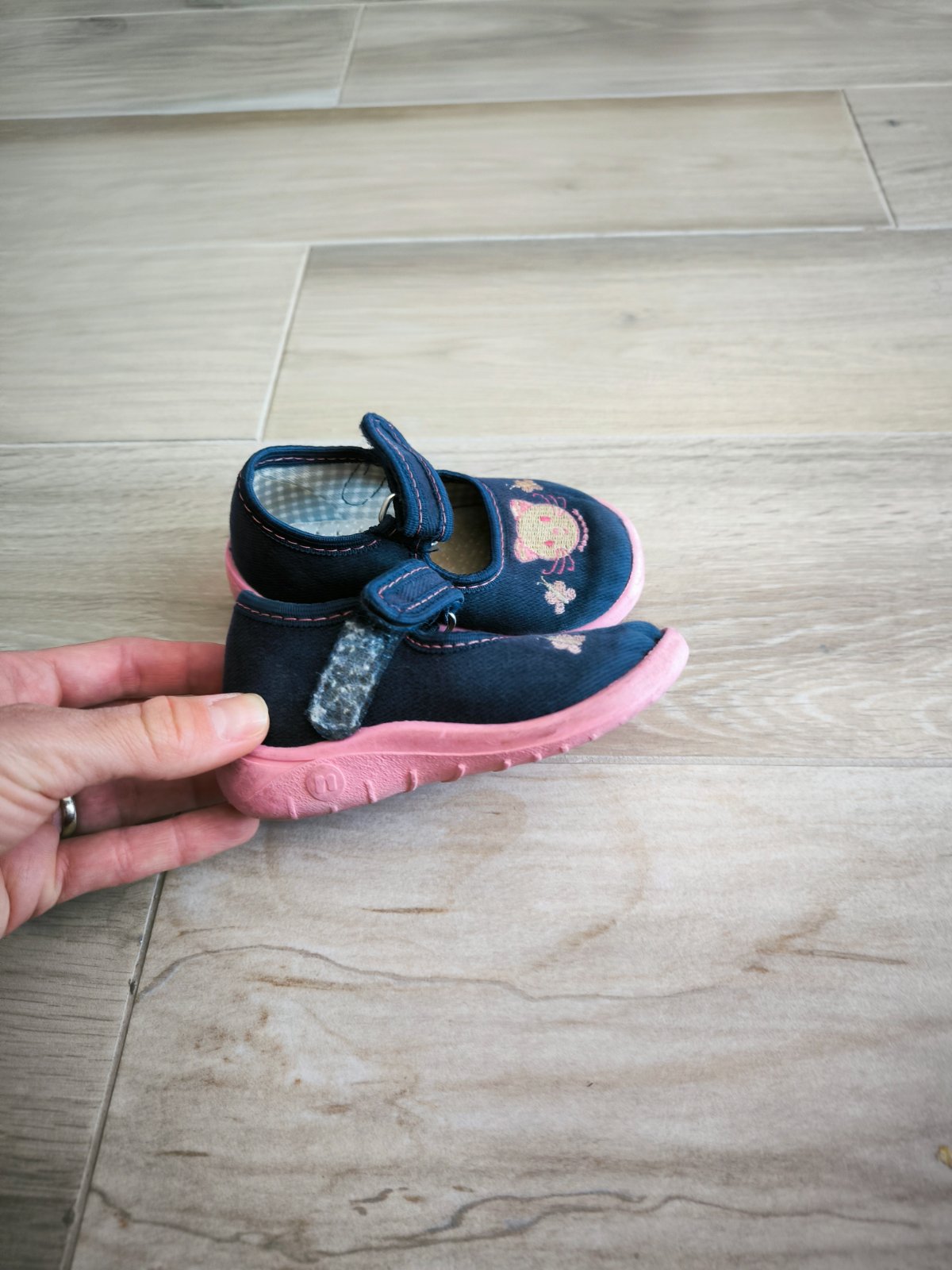 Sandálky Protetika,veľkosť 21,vd 14,5.Modra farba pustila na sivú.Vzadu je modrá farba vysuchana.