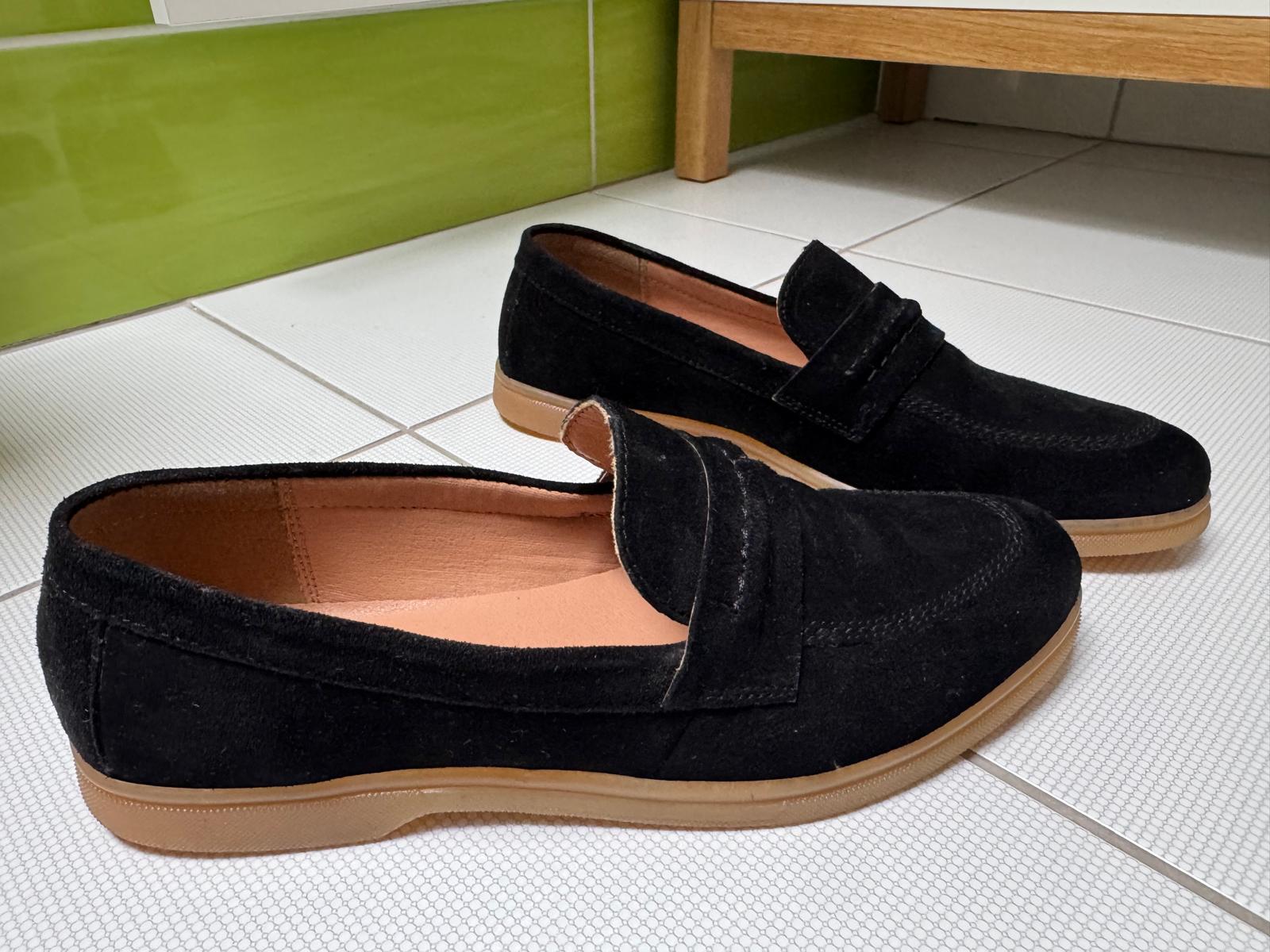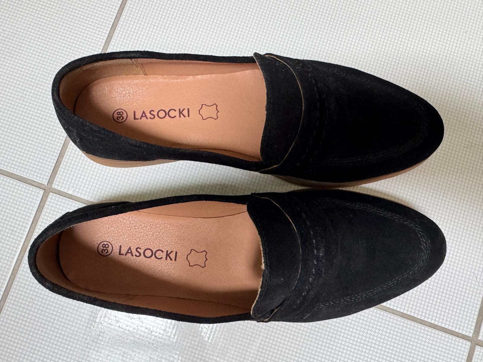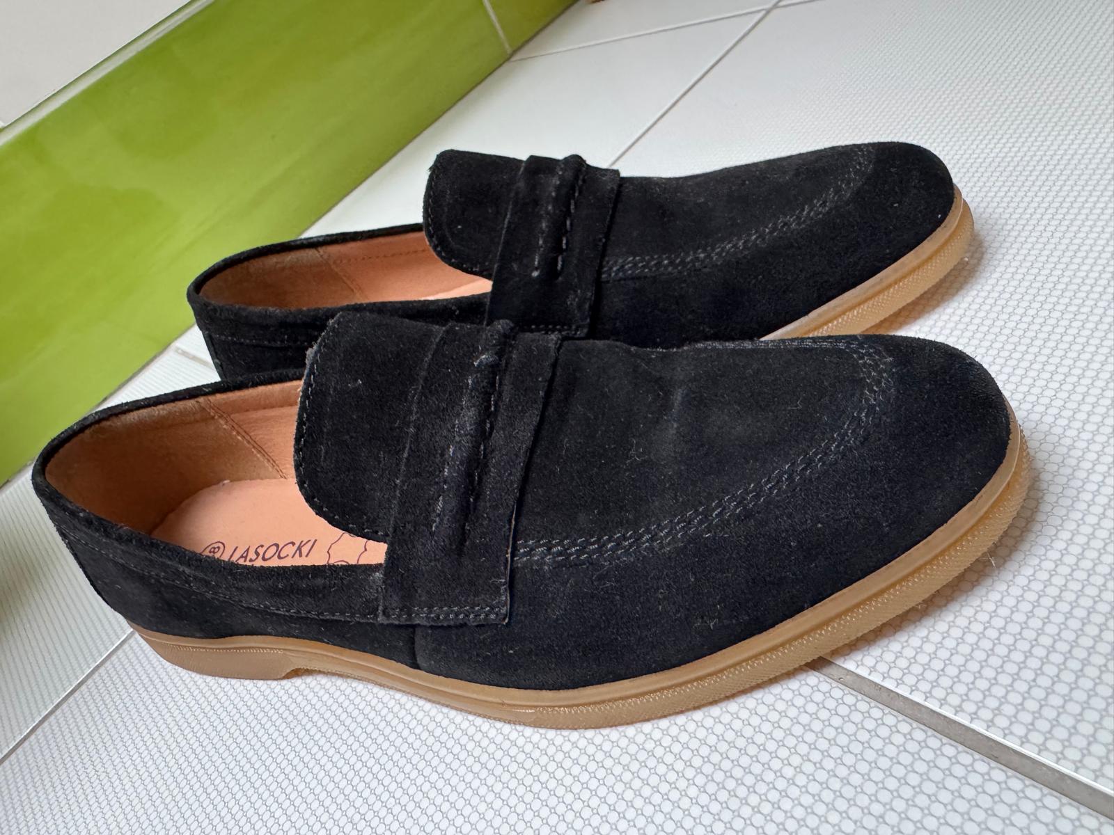 Predávam čierne nazúvacie topánky značky Lasocki, veľkosť 39. Sú veľmi pohodlné, s jednoduchým a elegantným dizajnom, ktorý sa hodí k rôznym outfitom.