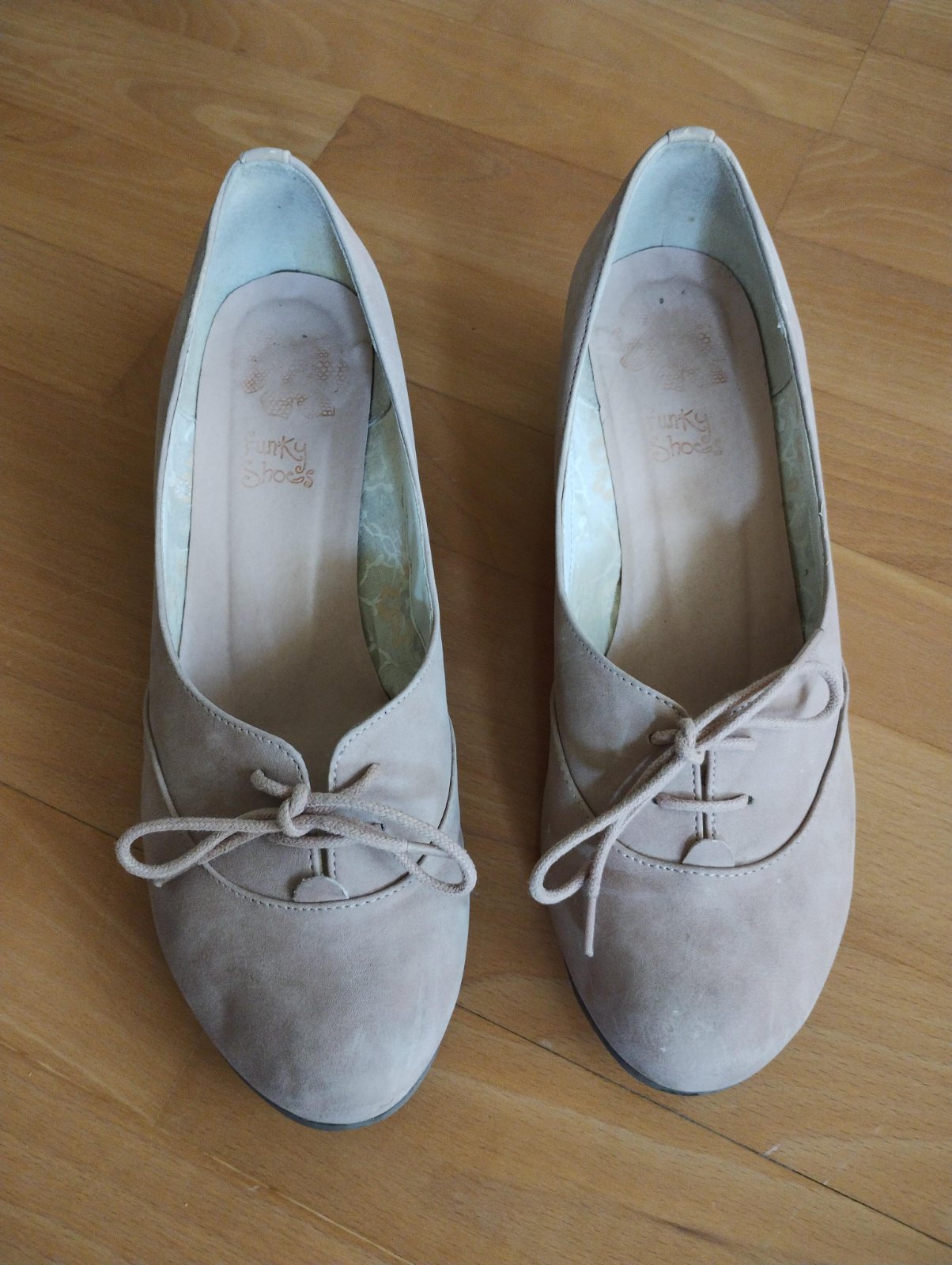 Mala som ich iba na jednom fotení. Sú vo výbornom stave, akurát poškodenie je také, že odletelo zopár cvočkov z platformy. Na jednej je z vnútornej strany odretá tráva (viď foto), šlo by to vyčisti...