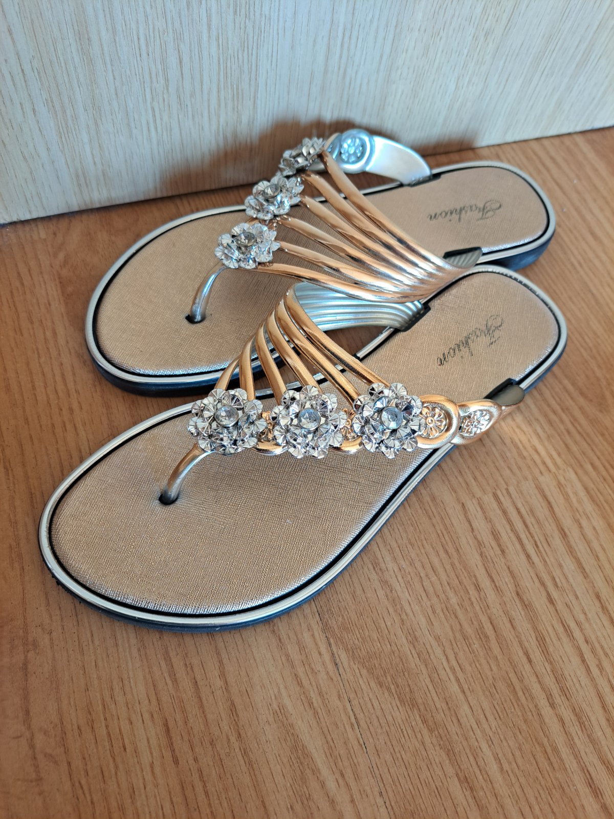 Predam mäkké slapky cez prsty, so zltymi kamienkami, príjemné na nožku. Veľkosti 37, dlzka je 24.3 mm